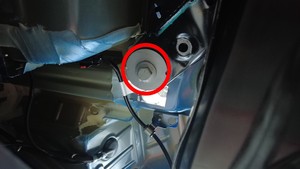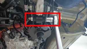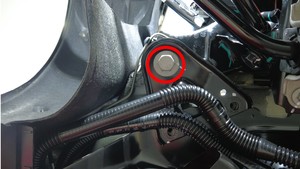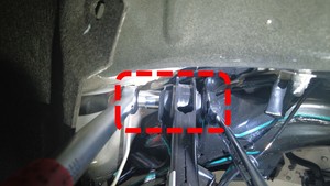 检查将左侧剪力板固定到车辆的大号螺栓,确认其扭矩,然后用油性记号笔标记螺栓。