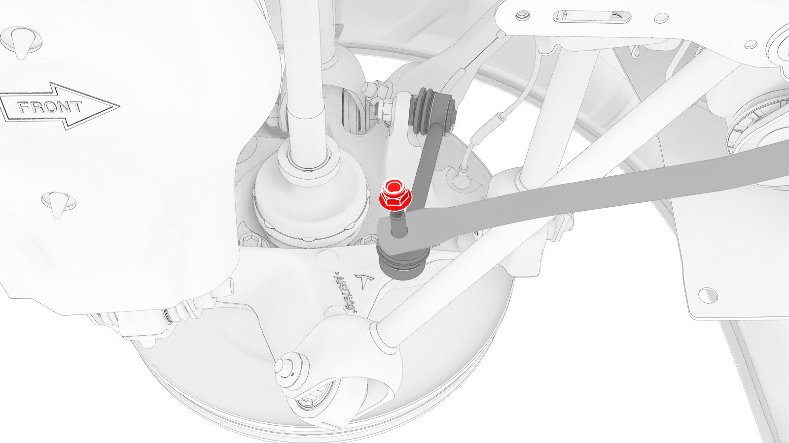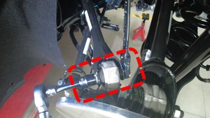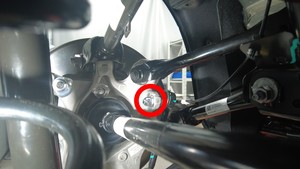 检查将左后下尾连杆固定到左后减震器的螺母,确认其扭矩,然后用油性记号笔标记螺栓。