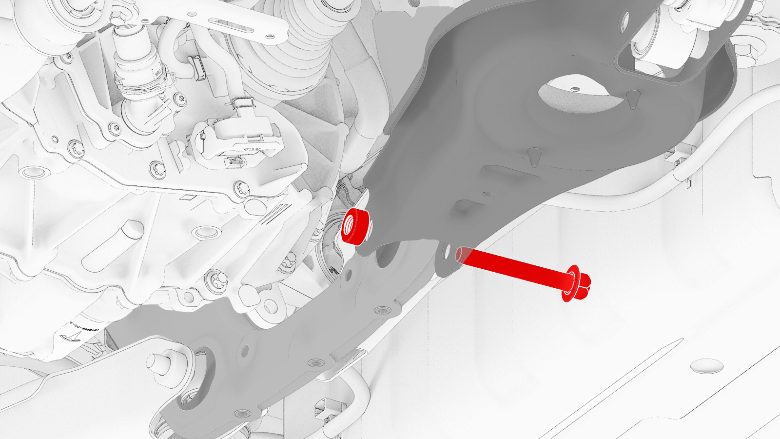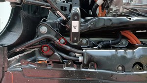 检查将右侧剪力板固定到车辆的大号螺栓,确认其扭矩,然后用油性记号笔标记螺栓。