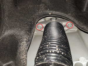 - 拆卸左右后悬架护罩。请参阅 左后悬架盖 ((拆卸和更换))。