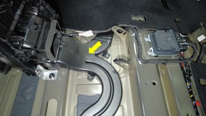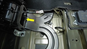 拆卸将中控台左后部固定到车身的螺栓。重复此步骤,完成中控台右后部相关操作。