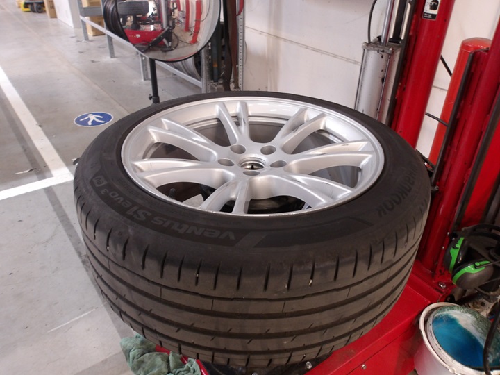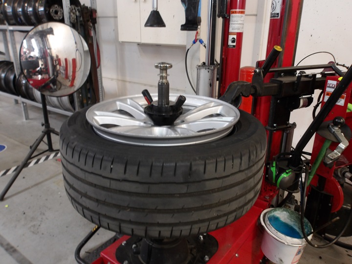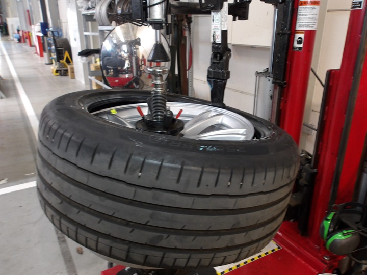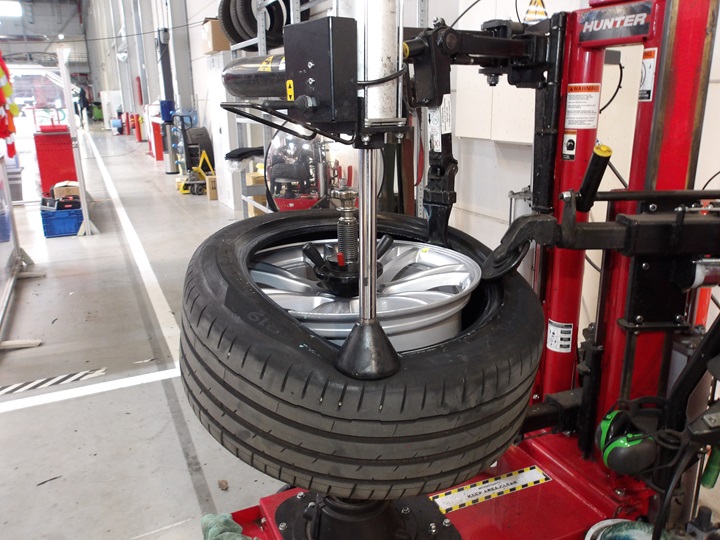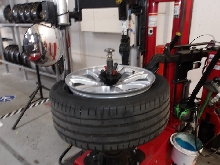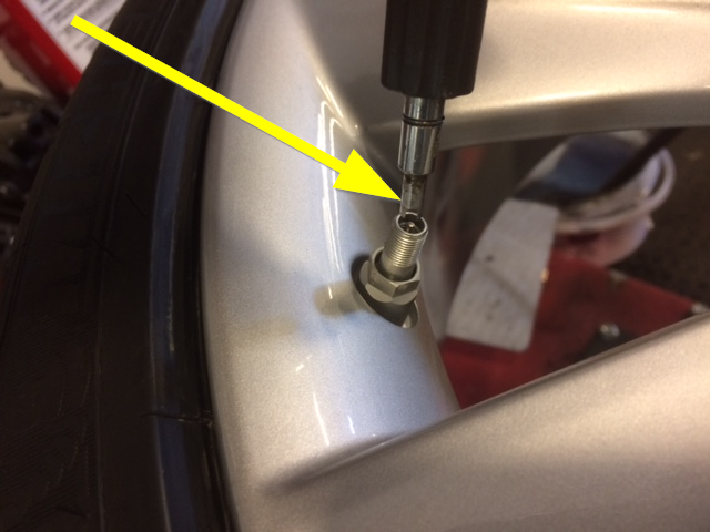 安装气门嘴芯,然后将轮毂从轮胎更换装置上拆下。