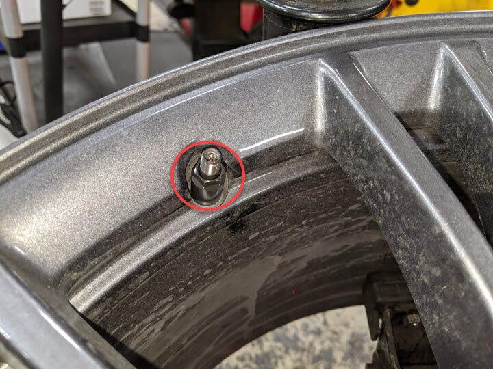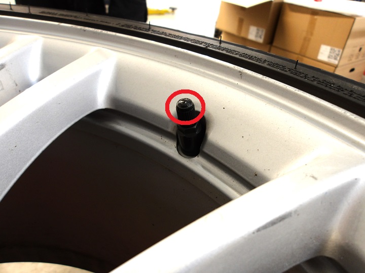 安装胎压监测系统 (TPMS) 传感器,使其与轮毂紧密贴合。