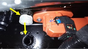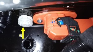 - 重复第4步,从高压电池高压电池仓的右侧底部拆下右侧溢流阀。