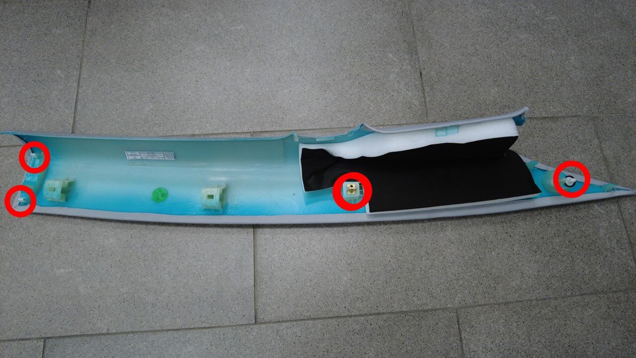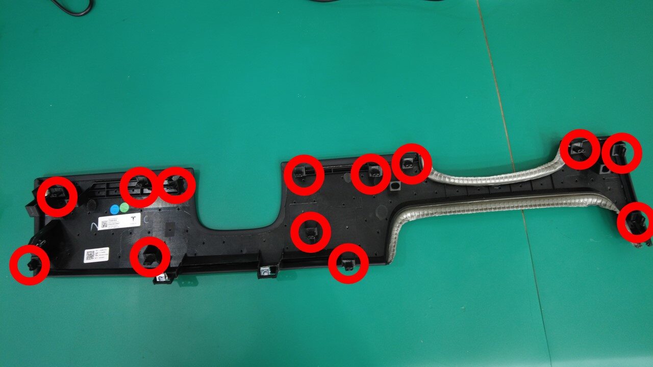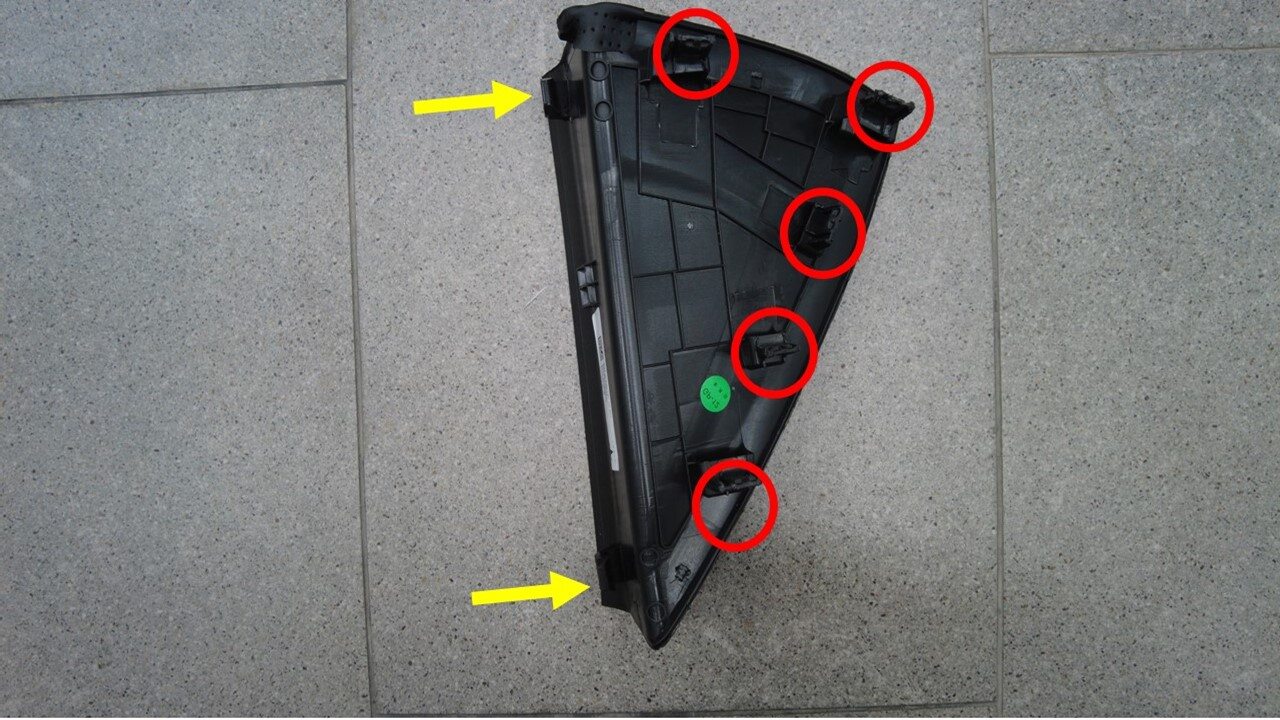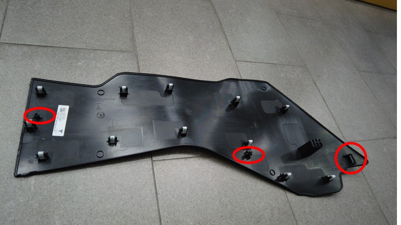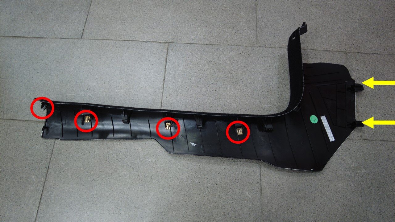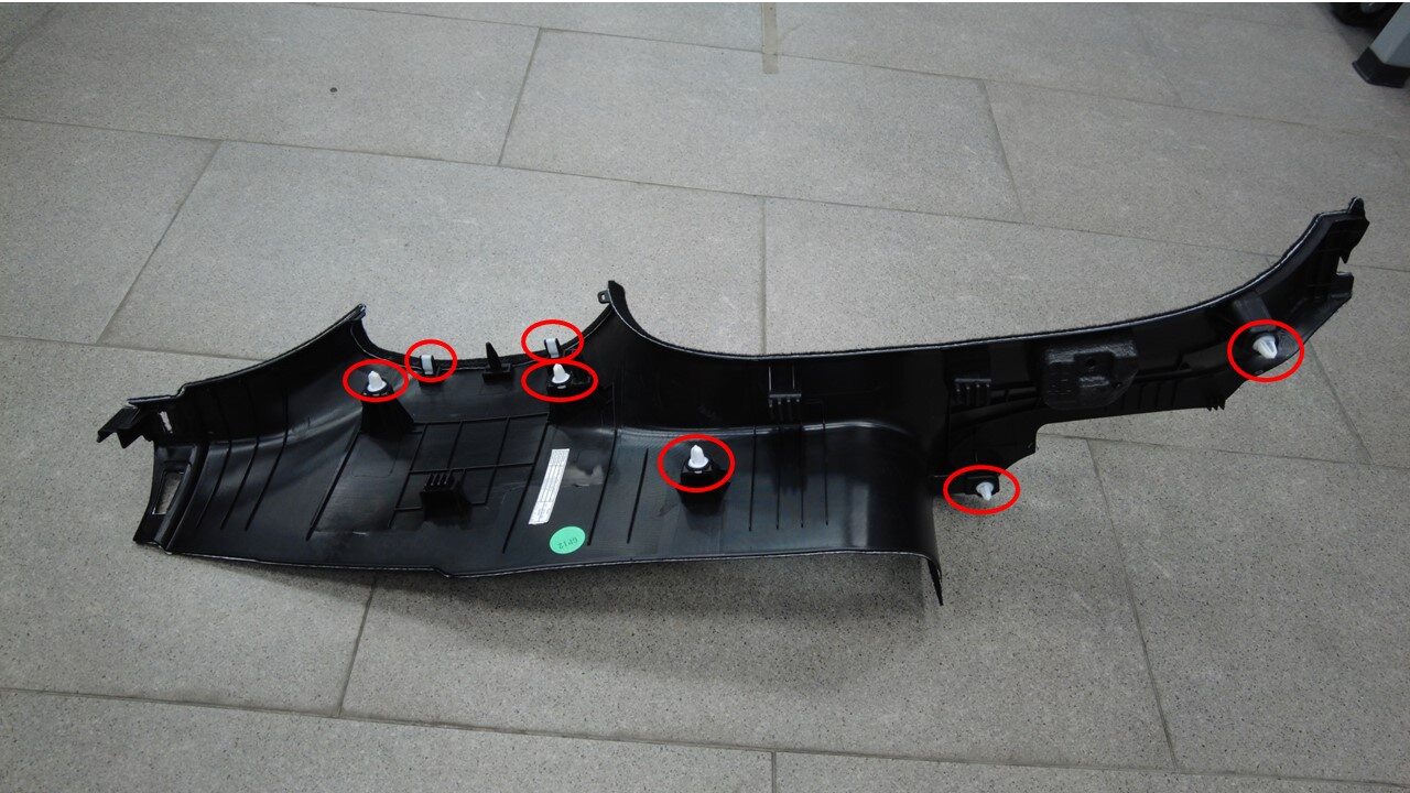 注12x clips, 2x positioning clips, 1x datum, Use trim tool starting at rear edge to release upper clips, If clips is too tight, Useprytool to remove clips, Then pull bottom to release remaining clips, Finally, release the datum and pull out side panel backward, Replace clips if it is damaged