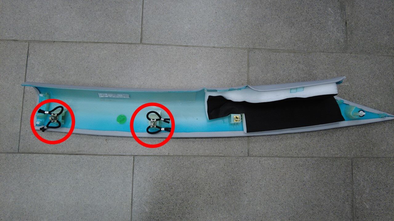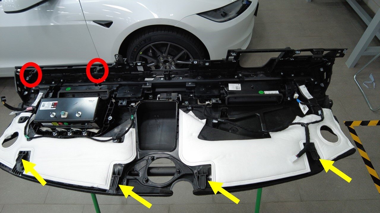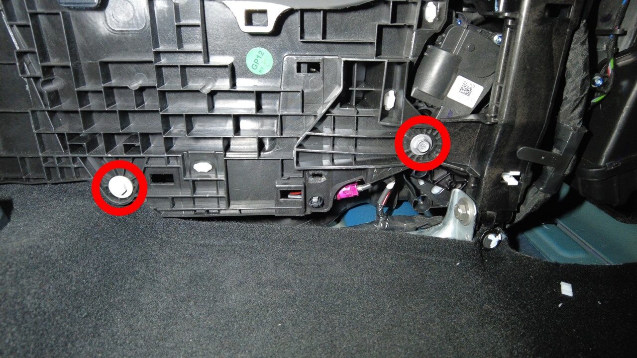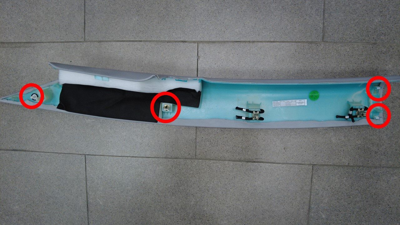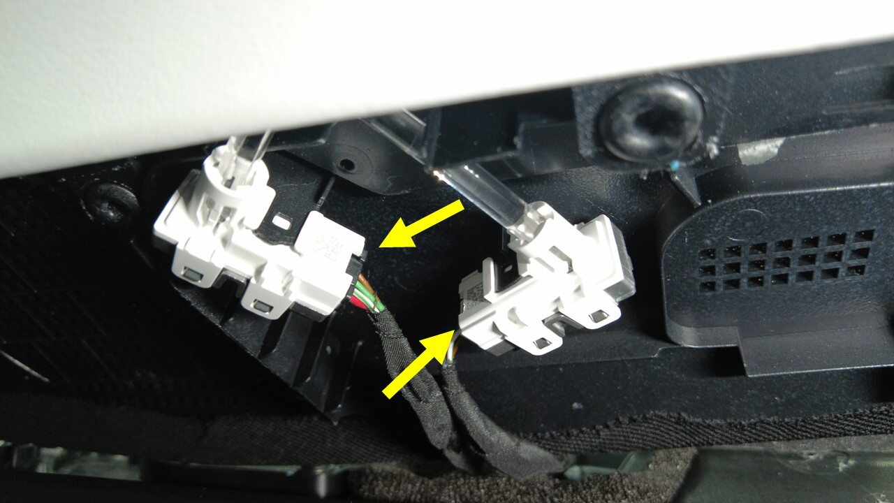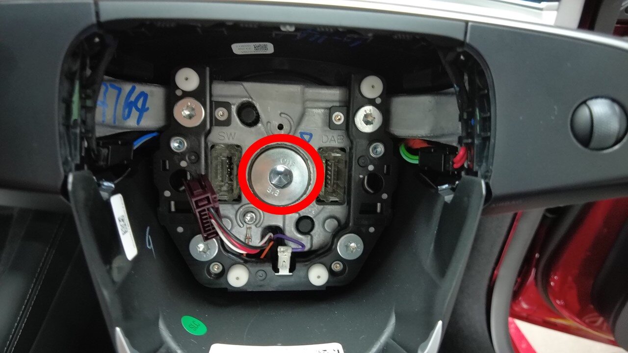 注2x spring clips, 2x datums, Press the spring simultaneously from two access holes to release, Access holes located at 4 and 8 o’clock position, Do not insert tool too far as air bag connector could be damaged
