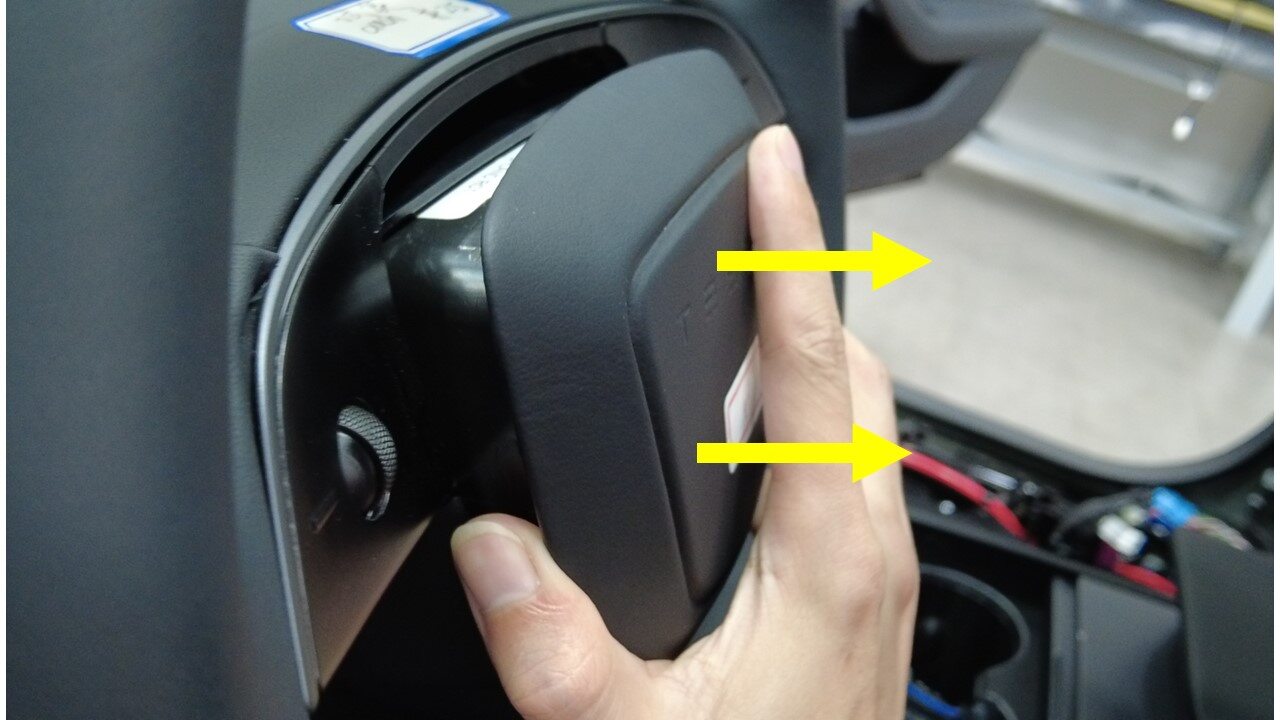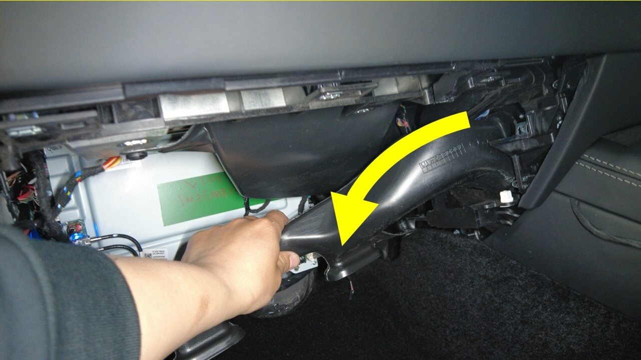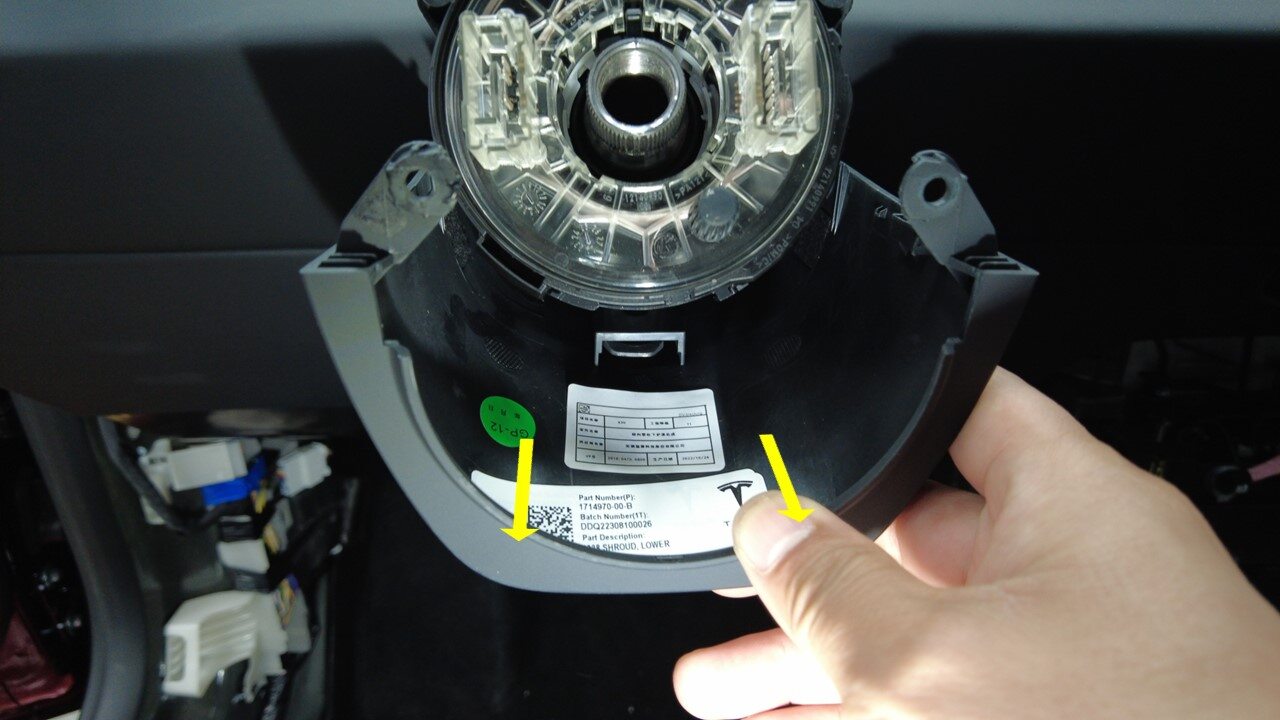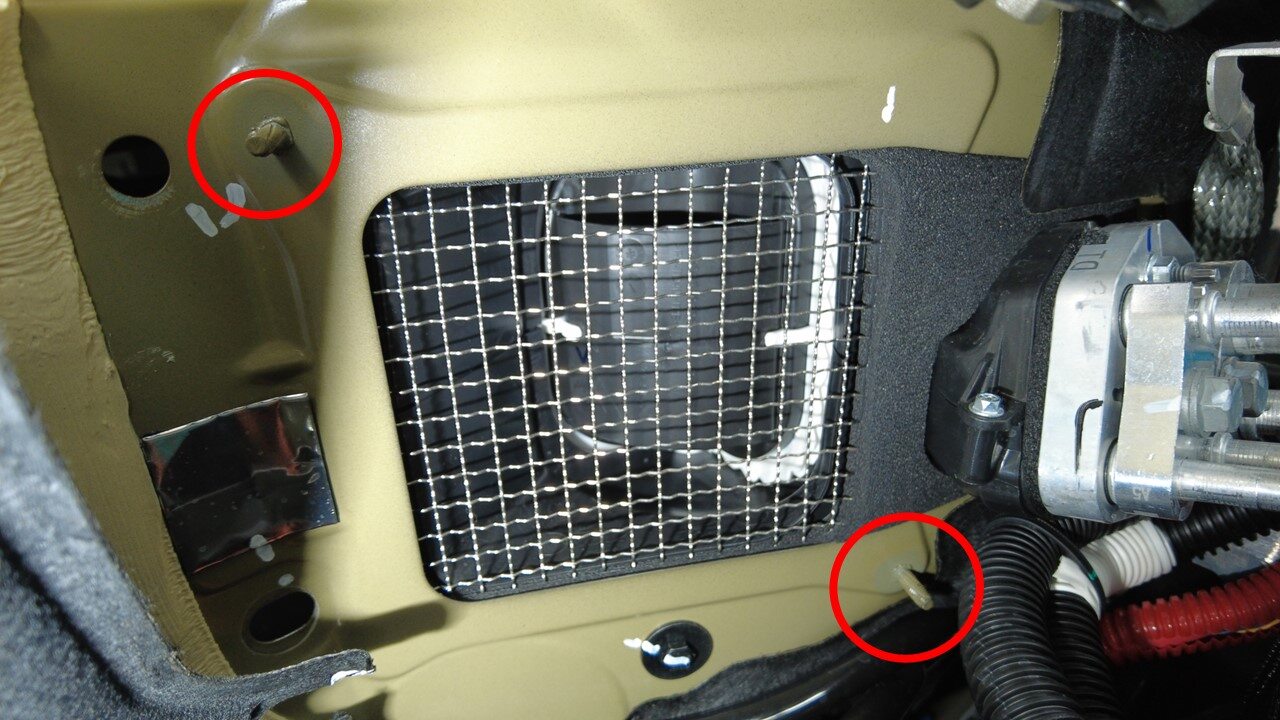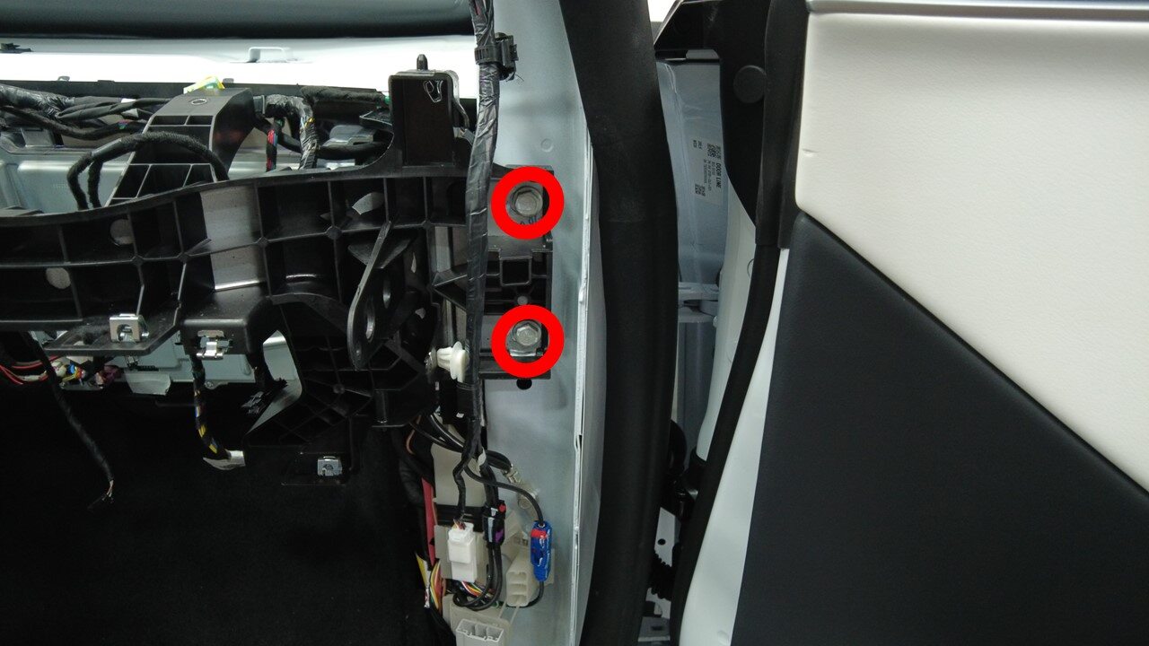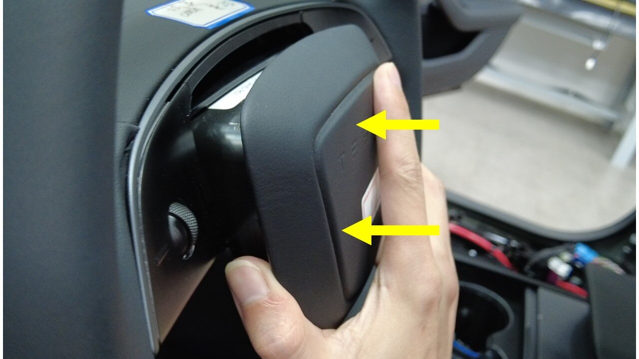 注2x spring clips, 2x datums, Press the spring simultaneously from two access holes to release, Access holes located at 4 and 8 o’clock position, Do not insert tool too far as air bag connector could be damaged