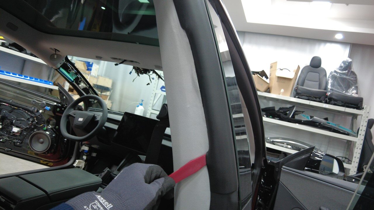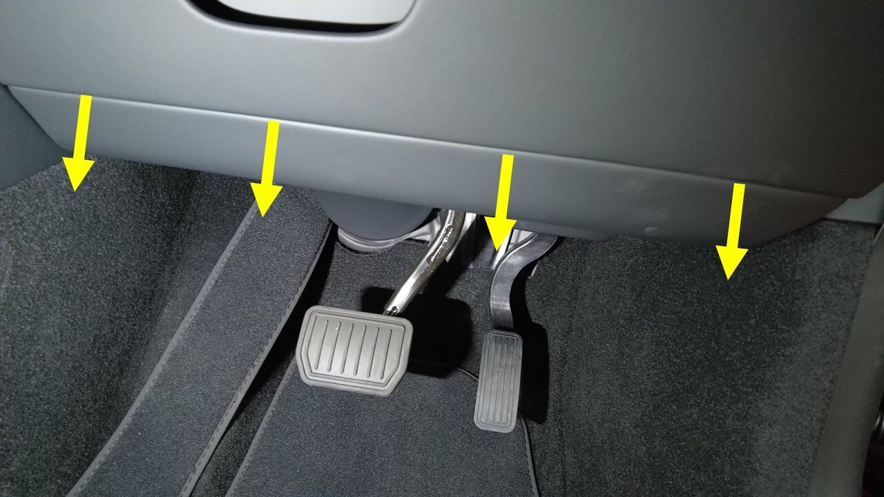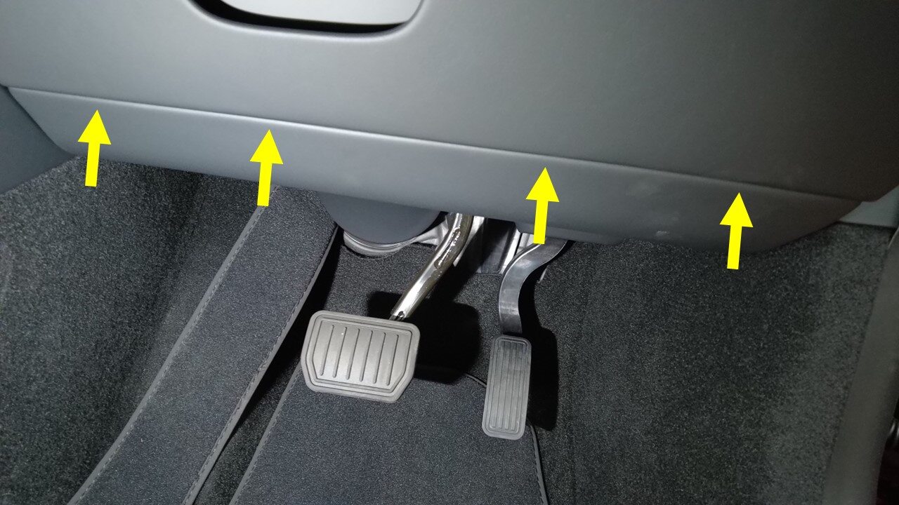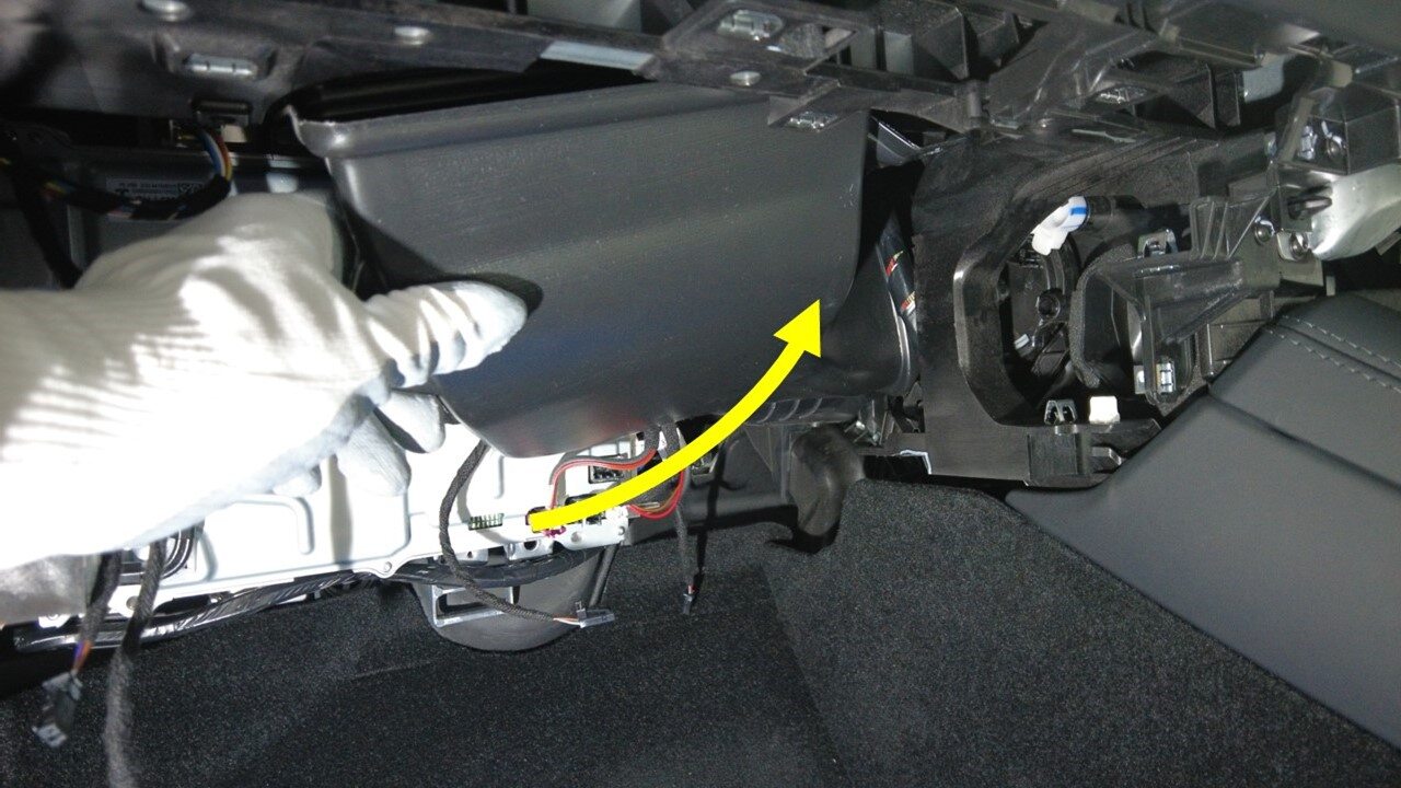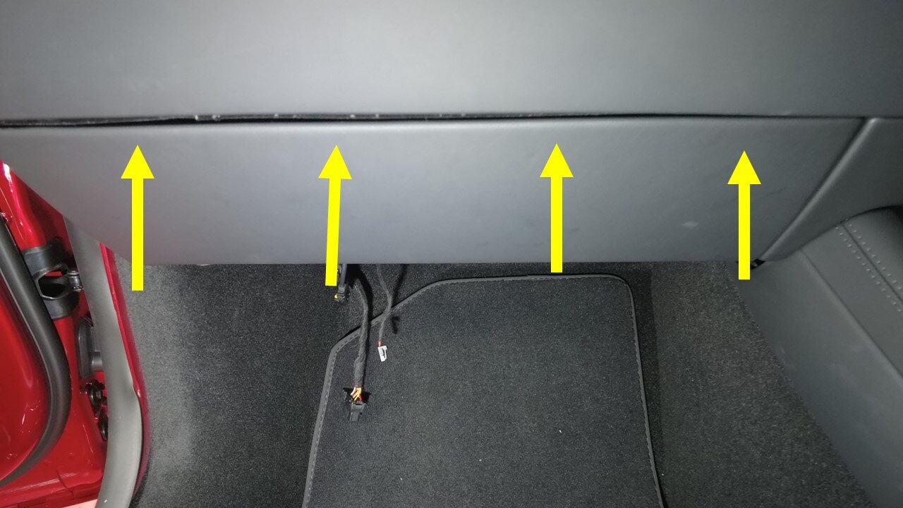 注6x clips, 1x metal clip, 2x guide tabs, 1x alignment pin, Slide bottom of trim along IP and speaker grill, attach tether to body side, Set clips starting at the bottom then work up, Pull seal over trim