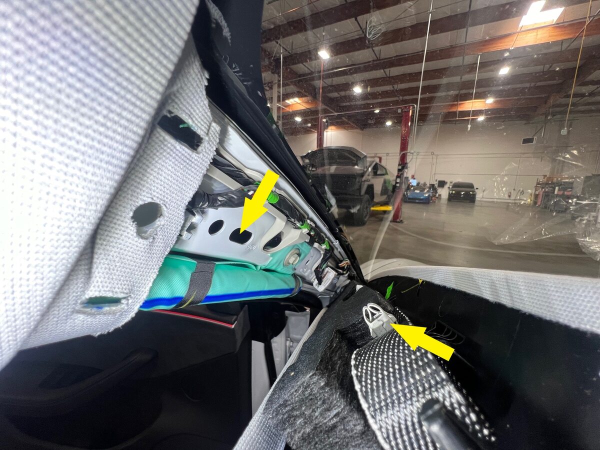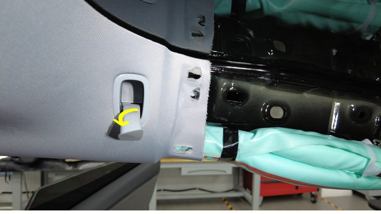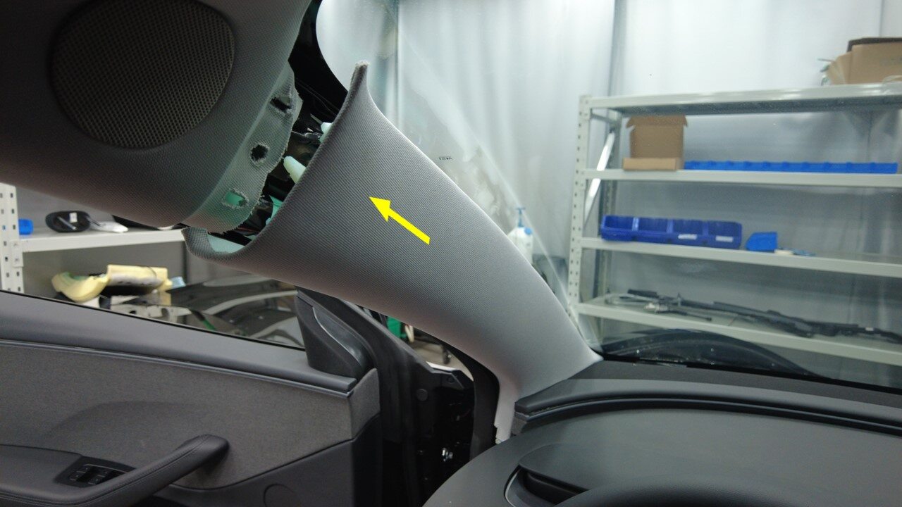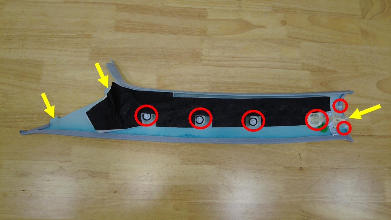 注6x clips, 1x tether, 2x guide tabs,1x alignment pin, Pull inside of the upper portion of upper A-pillar, Depress 2x tabs to remove tether from body side, Then pull upper A-pillar upward to remove