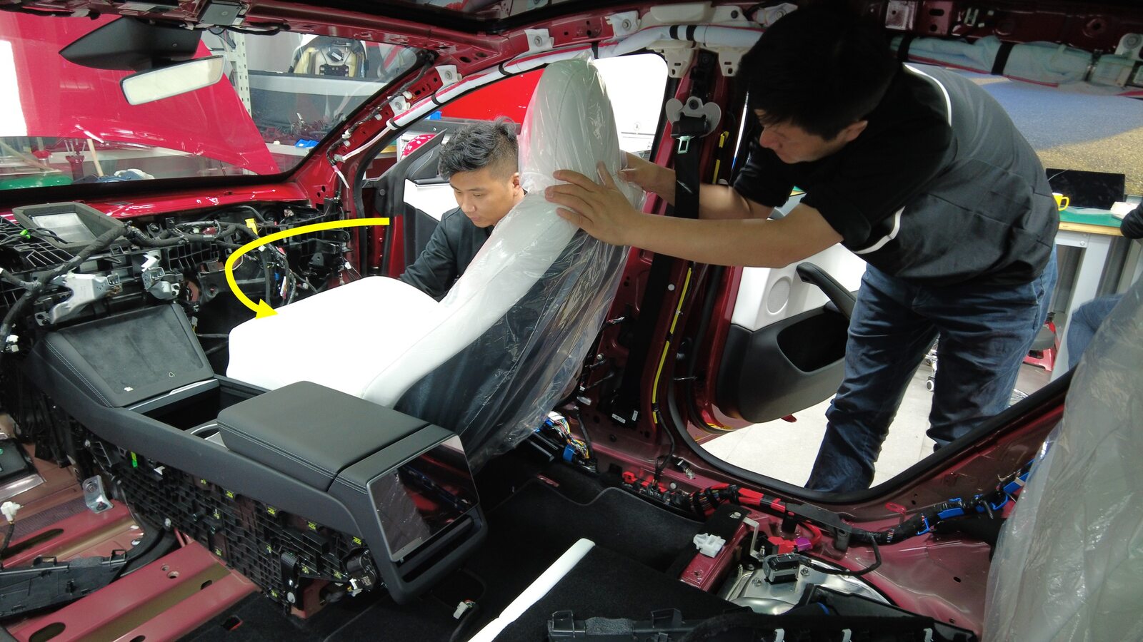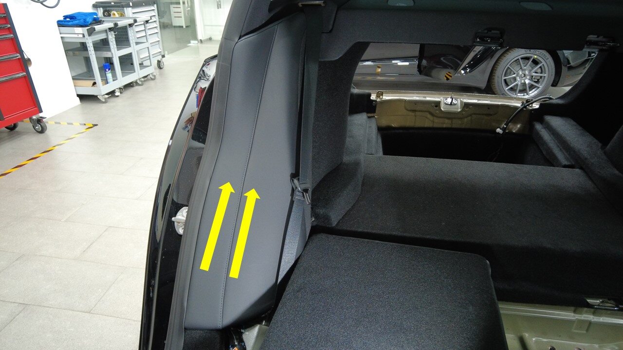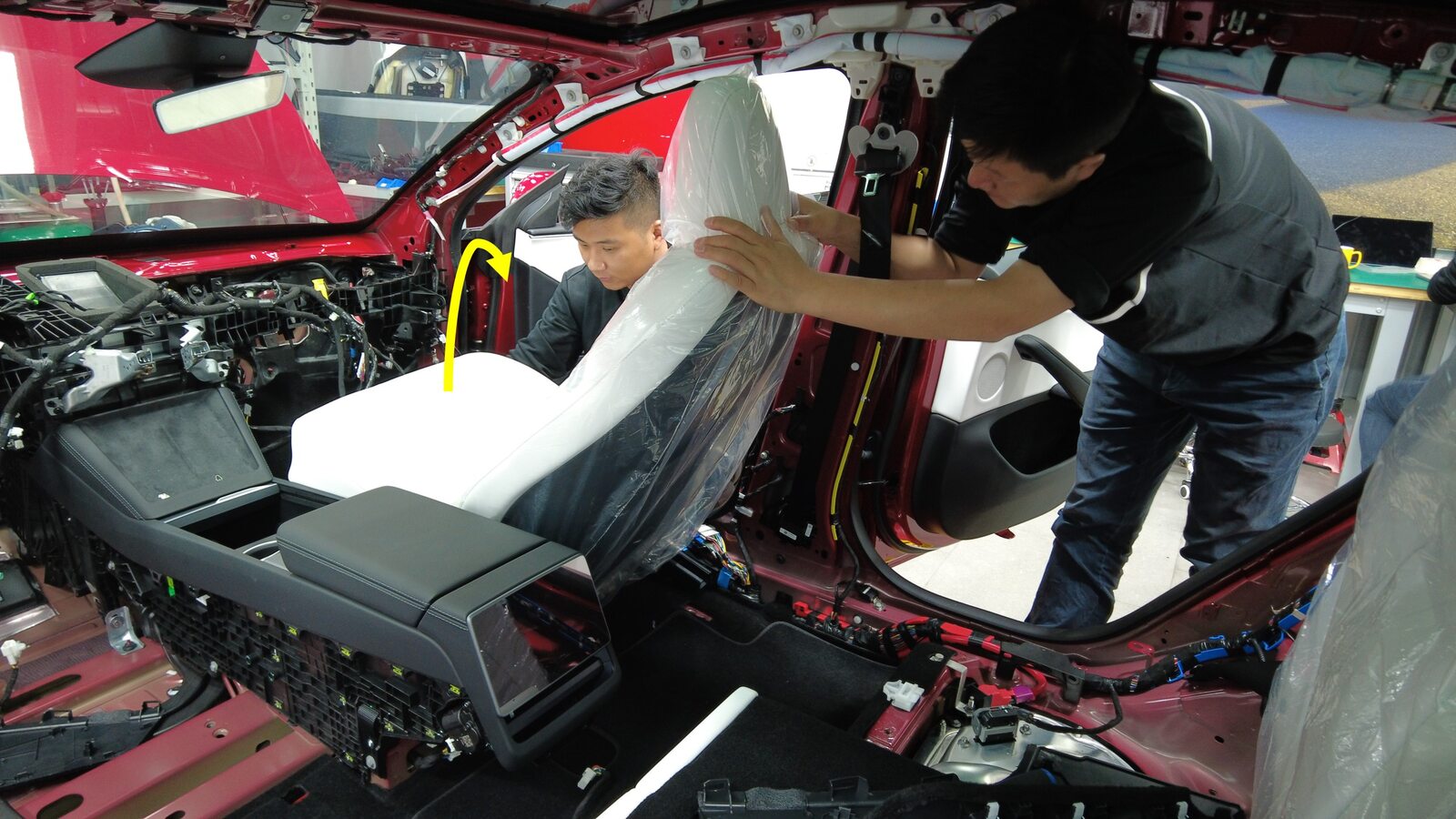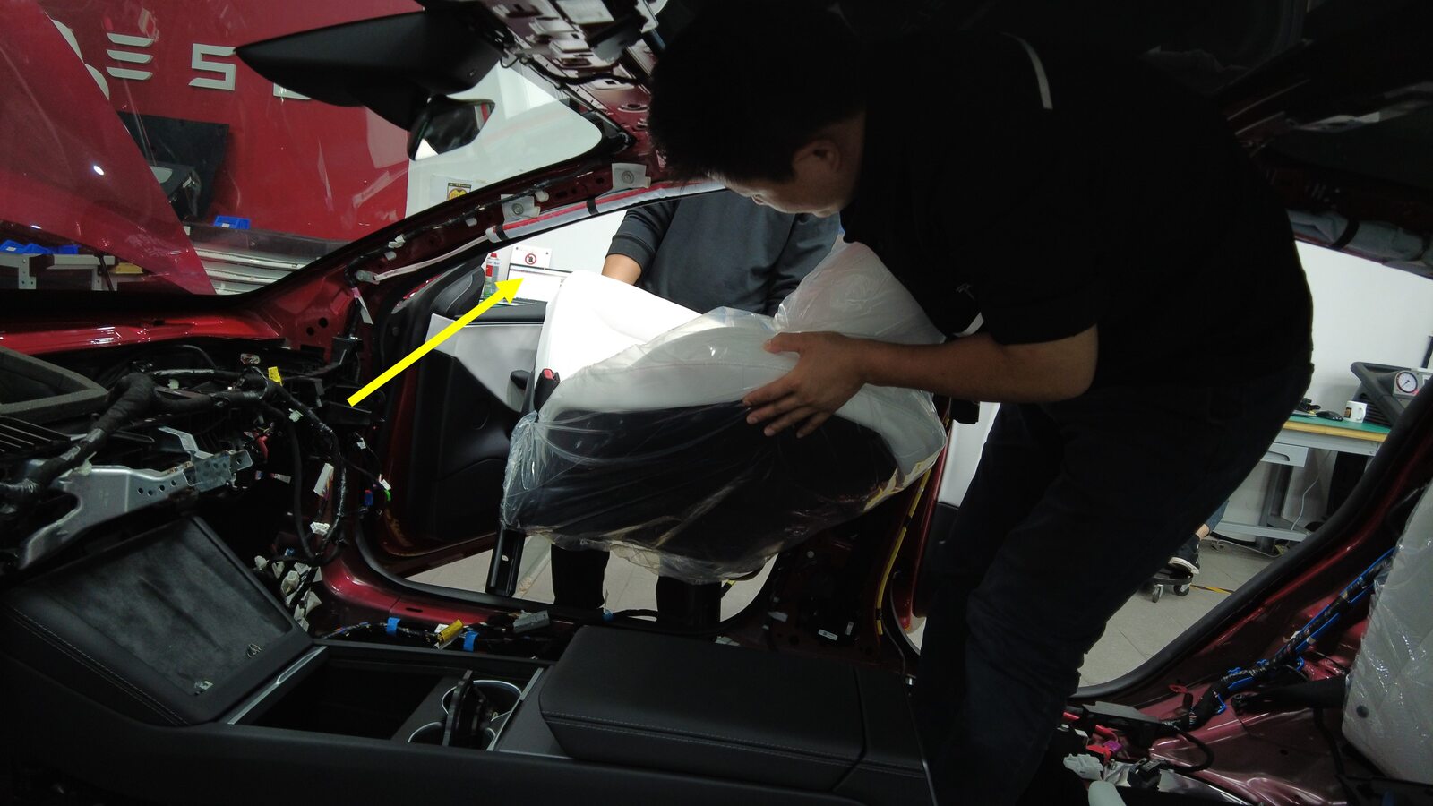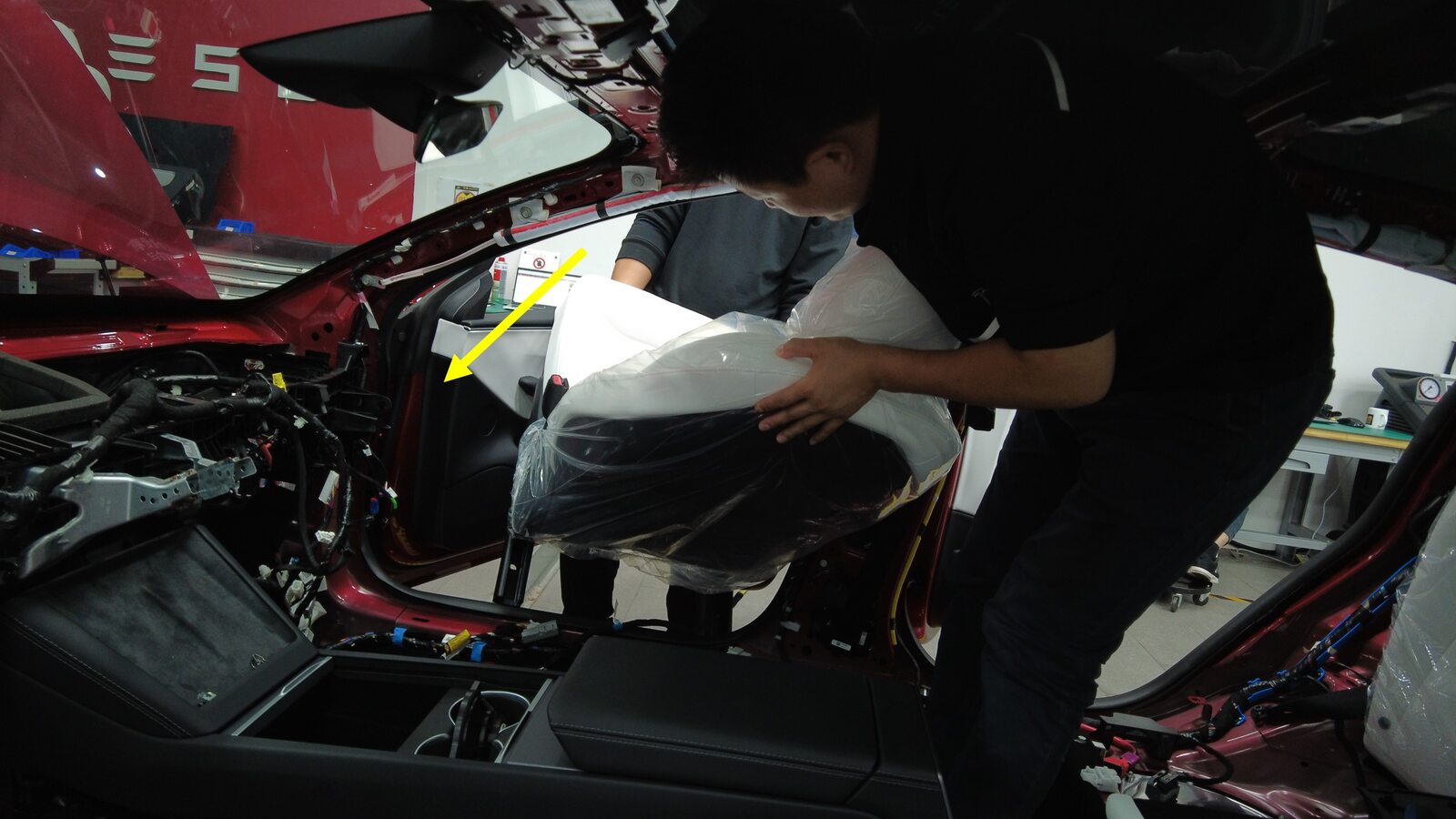 注Recommend assistance, Install seat from front RH door opening, Assistant should be ready to support seat back once it is in the vehicle, Caution not to damage any trim