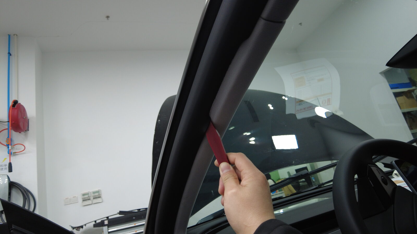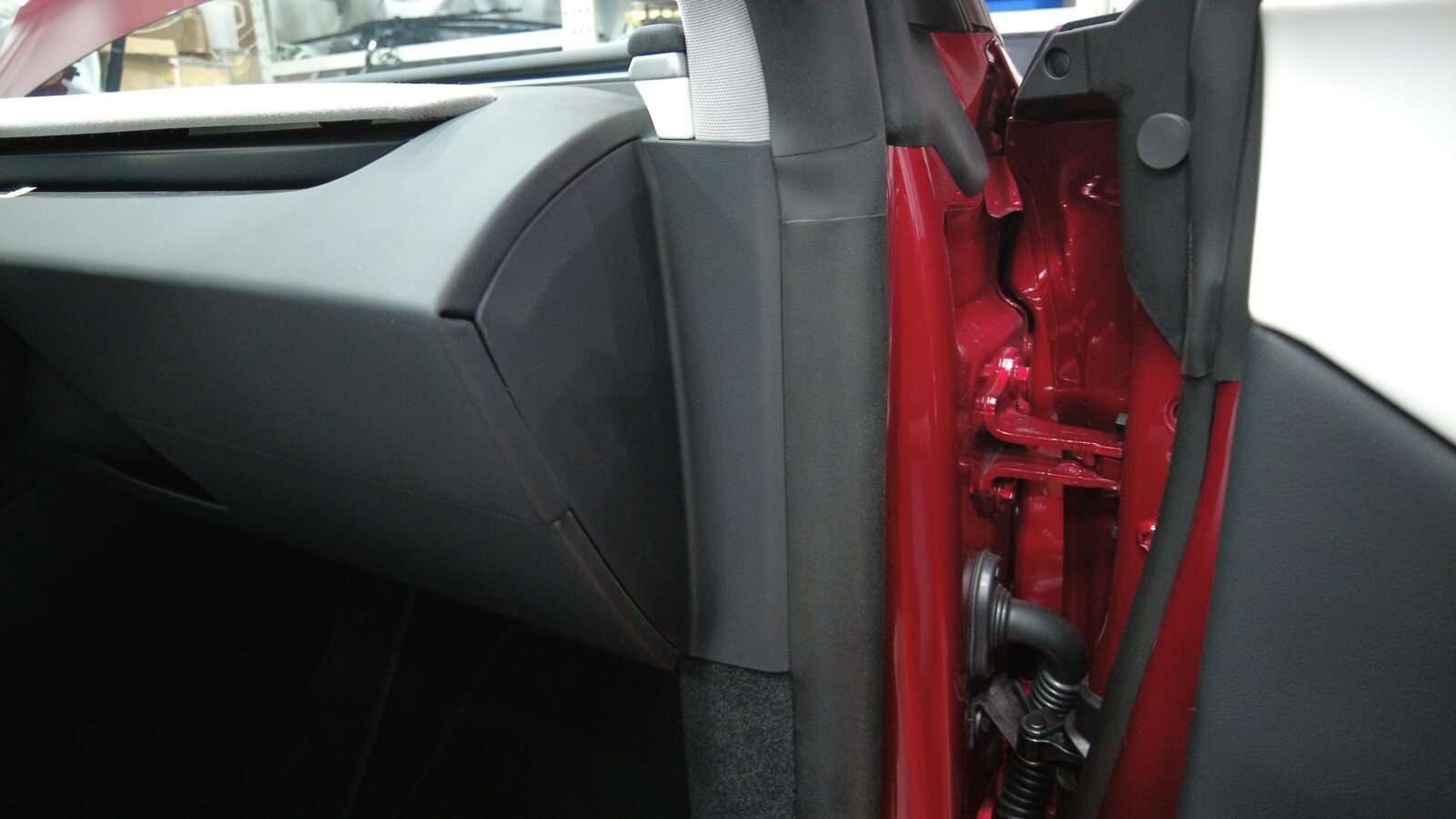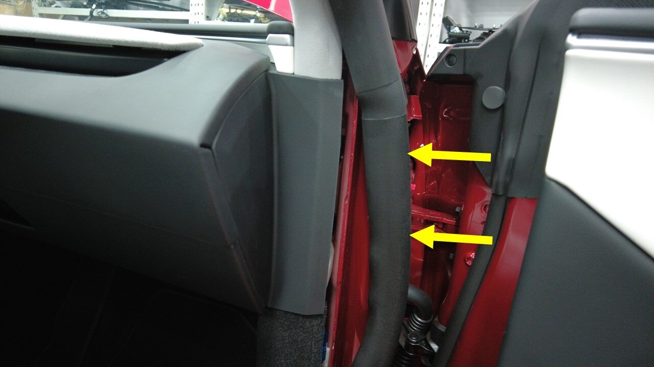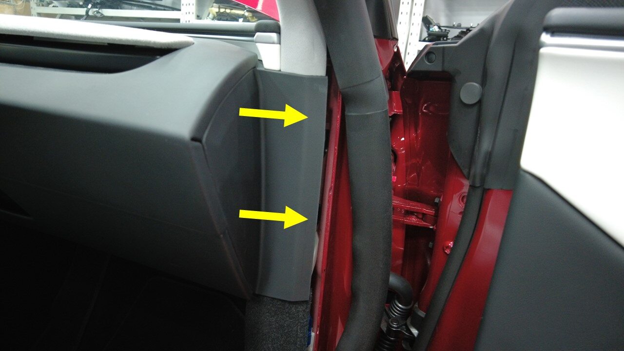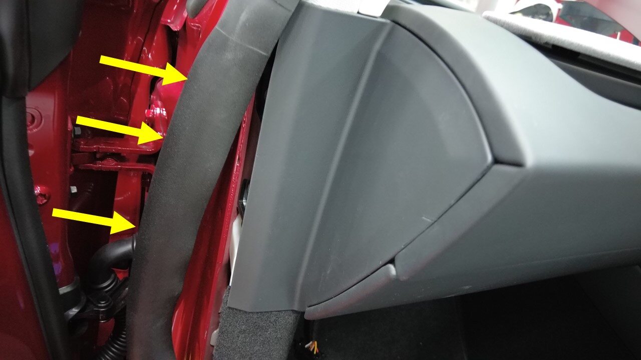 注4x clips, 2x guide tabs, Align 2 front tabs then align slot with harness bracket and then push rear clip to secure to lower B-pillar, Fully seat seal along trim