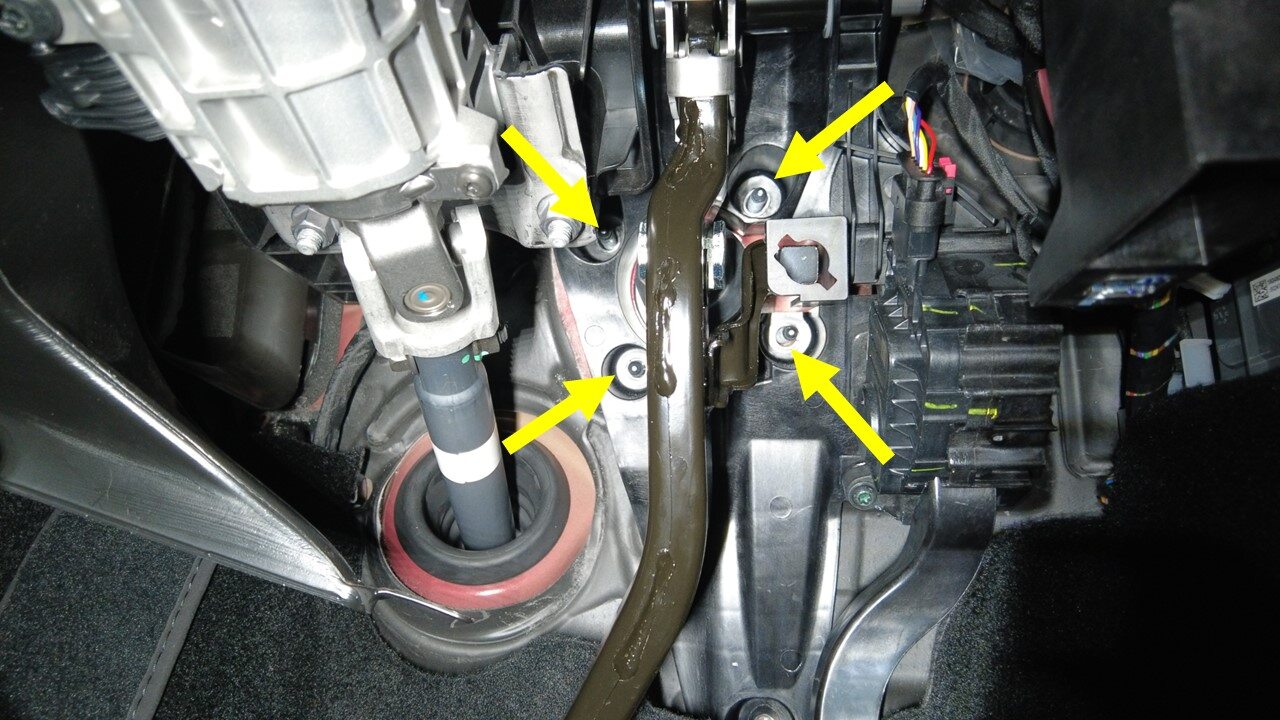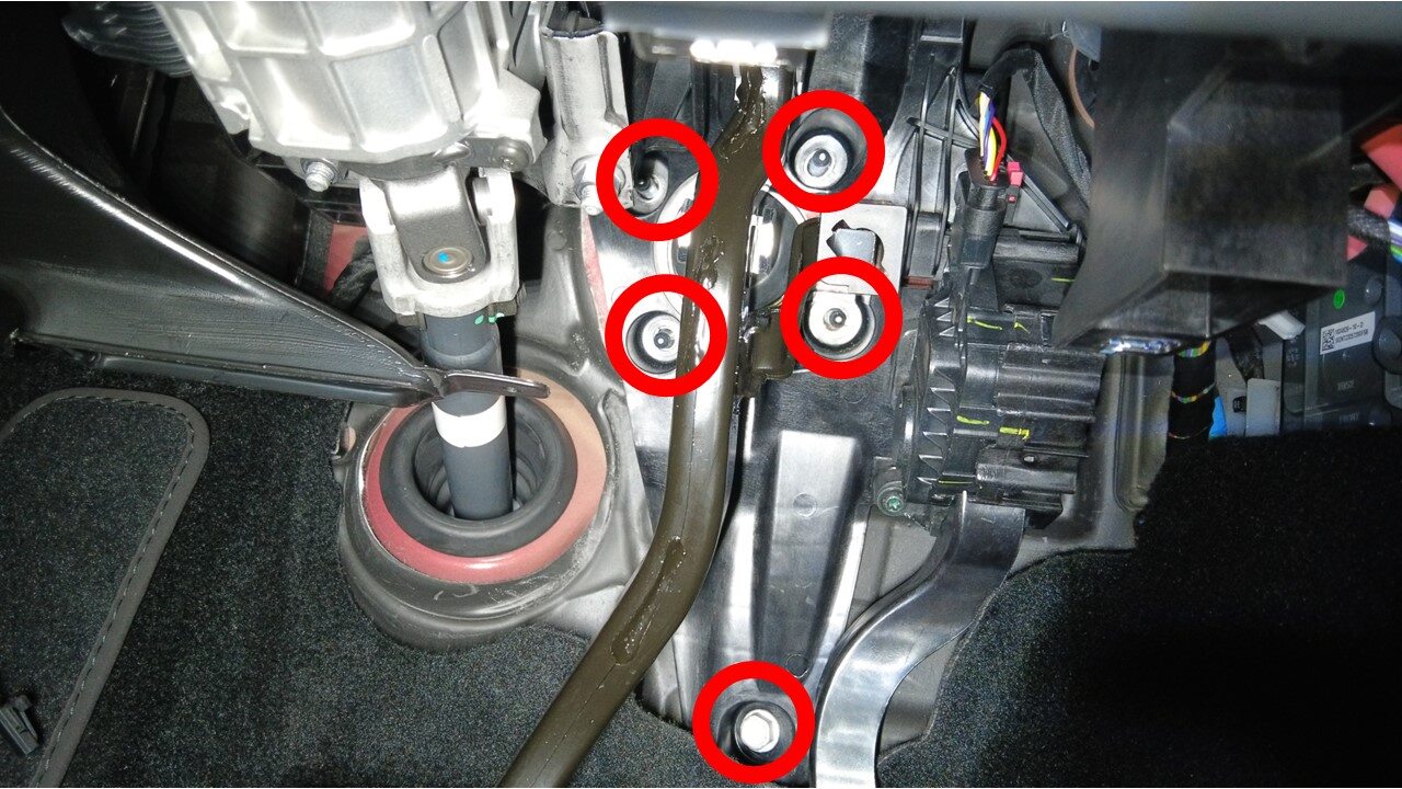 注4x studs, Negotiate around iBooster rod then secure onto iBooster studs