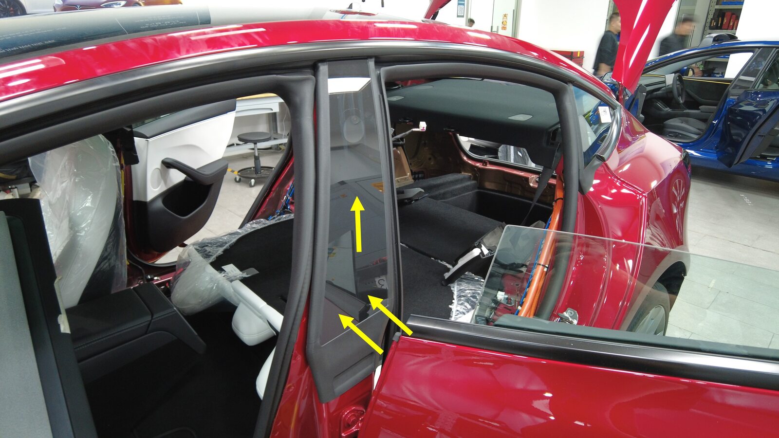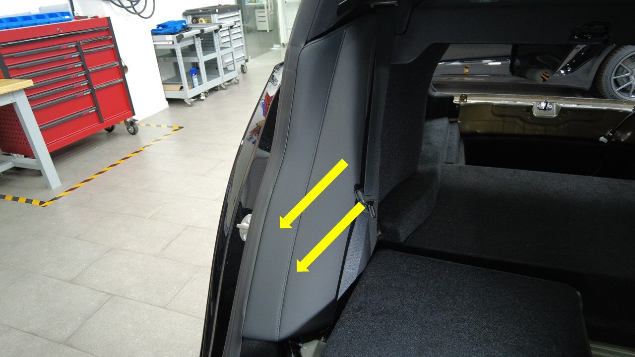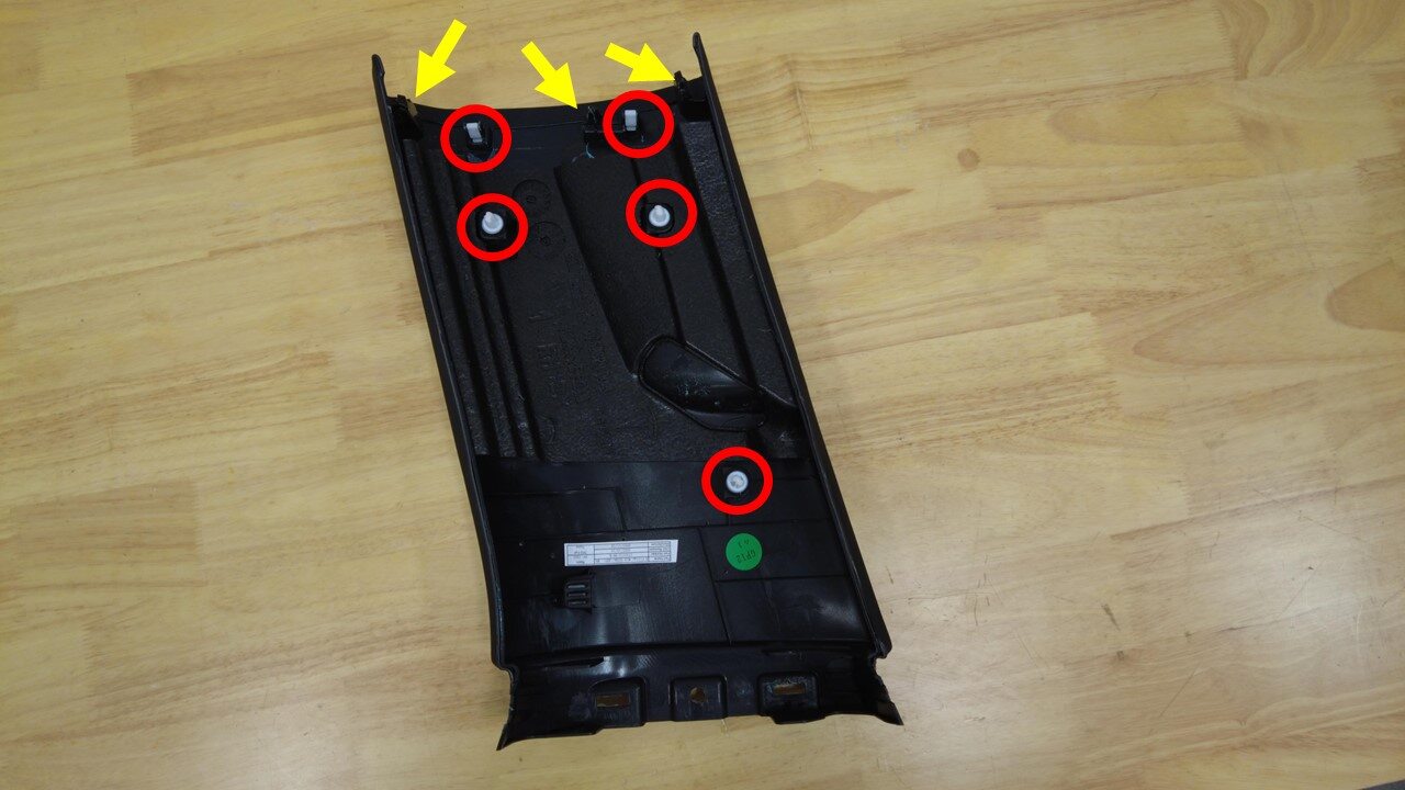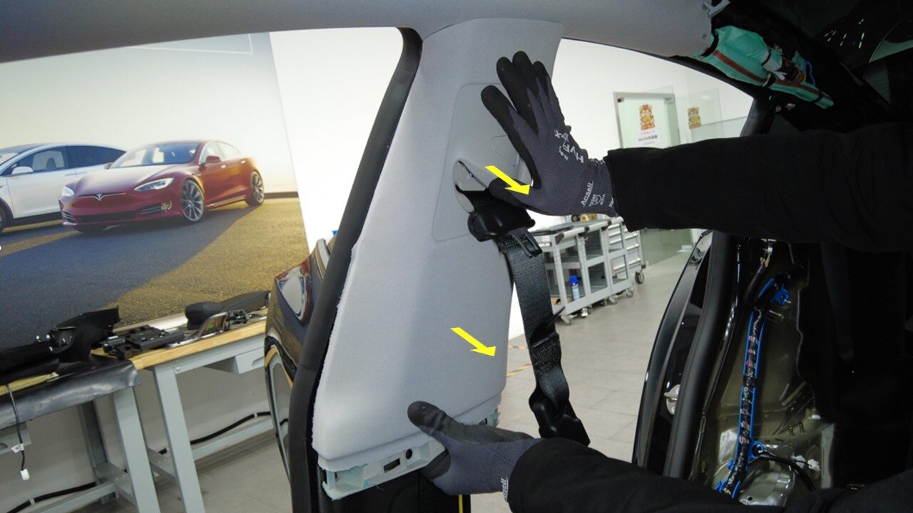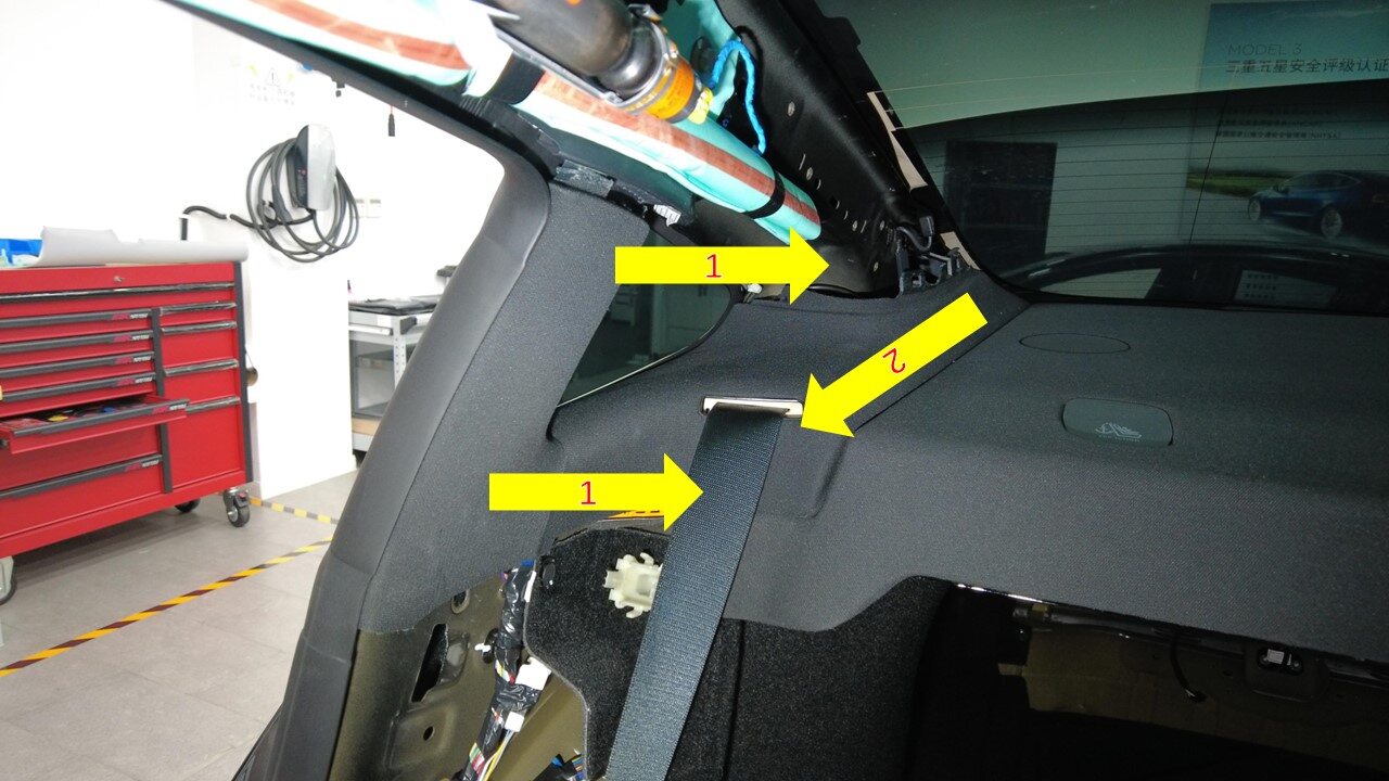 注3x clips,3x locator pins,Lower the seat belt slider to align it with the B-pillar panel, align the locating pin of the B-pillar upper trim panel with the slot, push in the direction of the arrow to install the clips after aligning them, Make sure the seal sits overlapping the trim