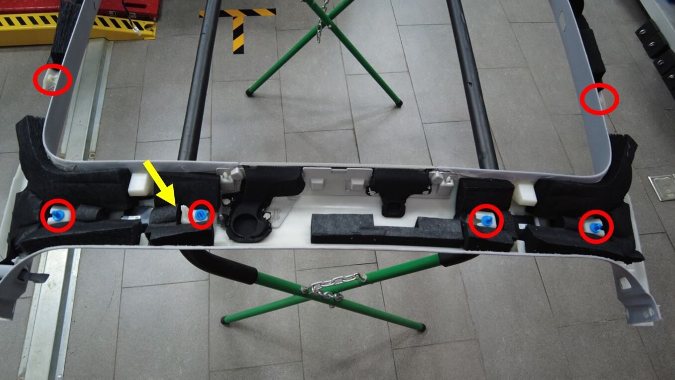 注14x clips, Hold rear wall of frunk to keep from flexing while engaging front clips
