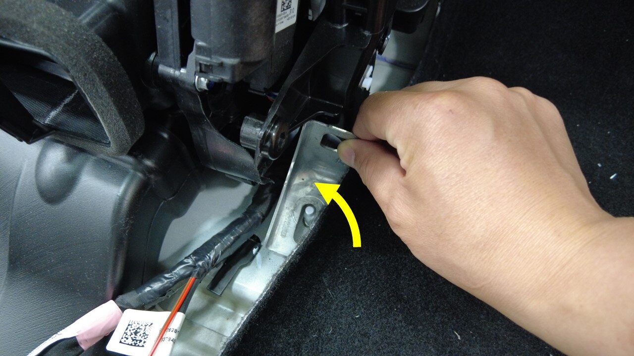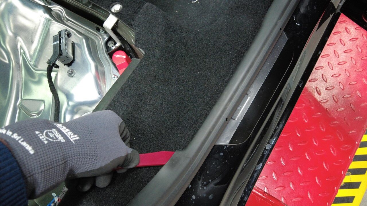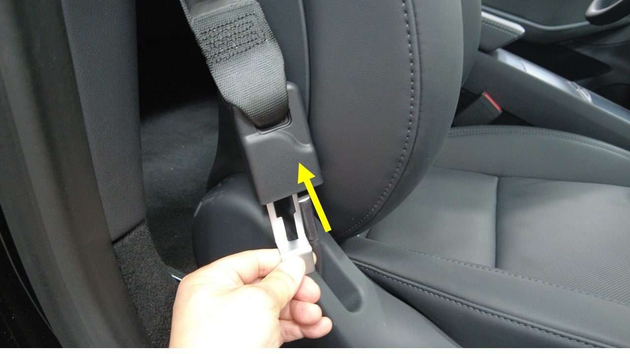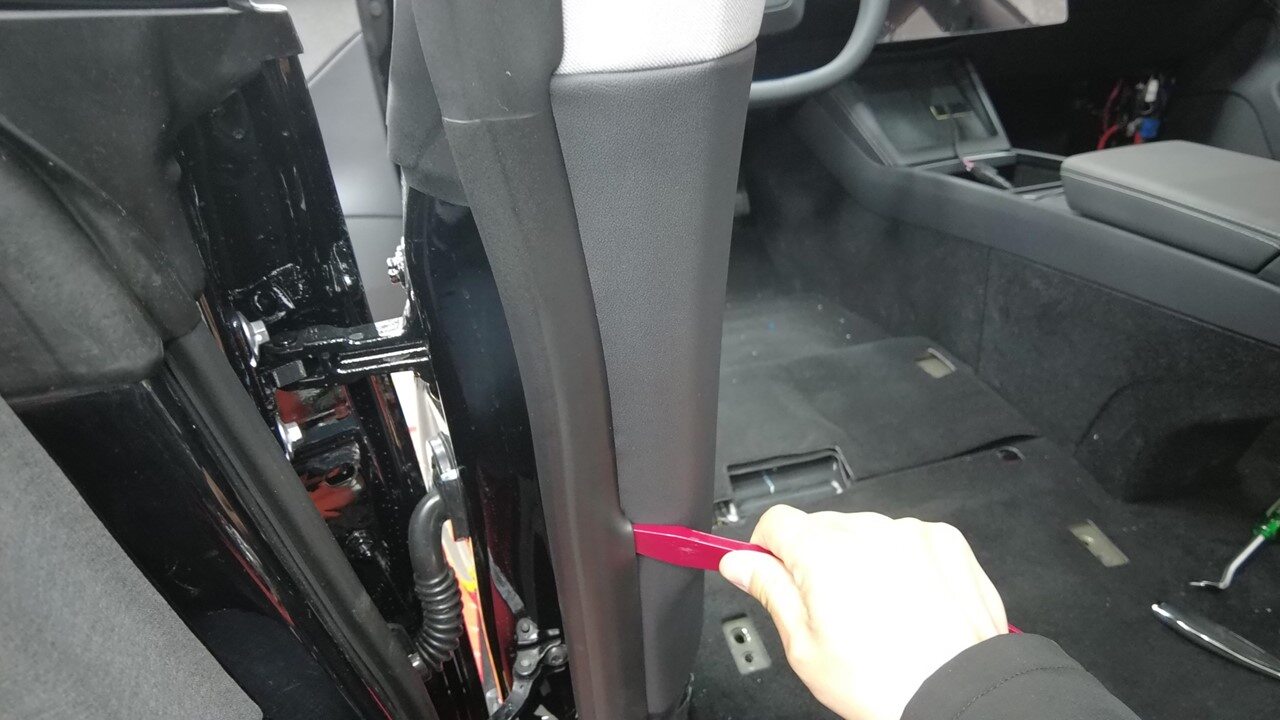 注Insert retractor into seat pre tensioner, Make sure it locks into position with push-pull-push test