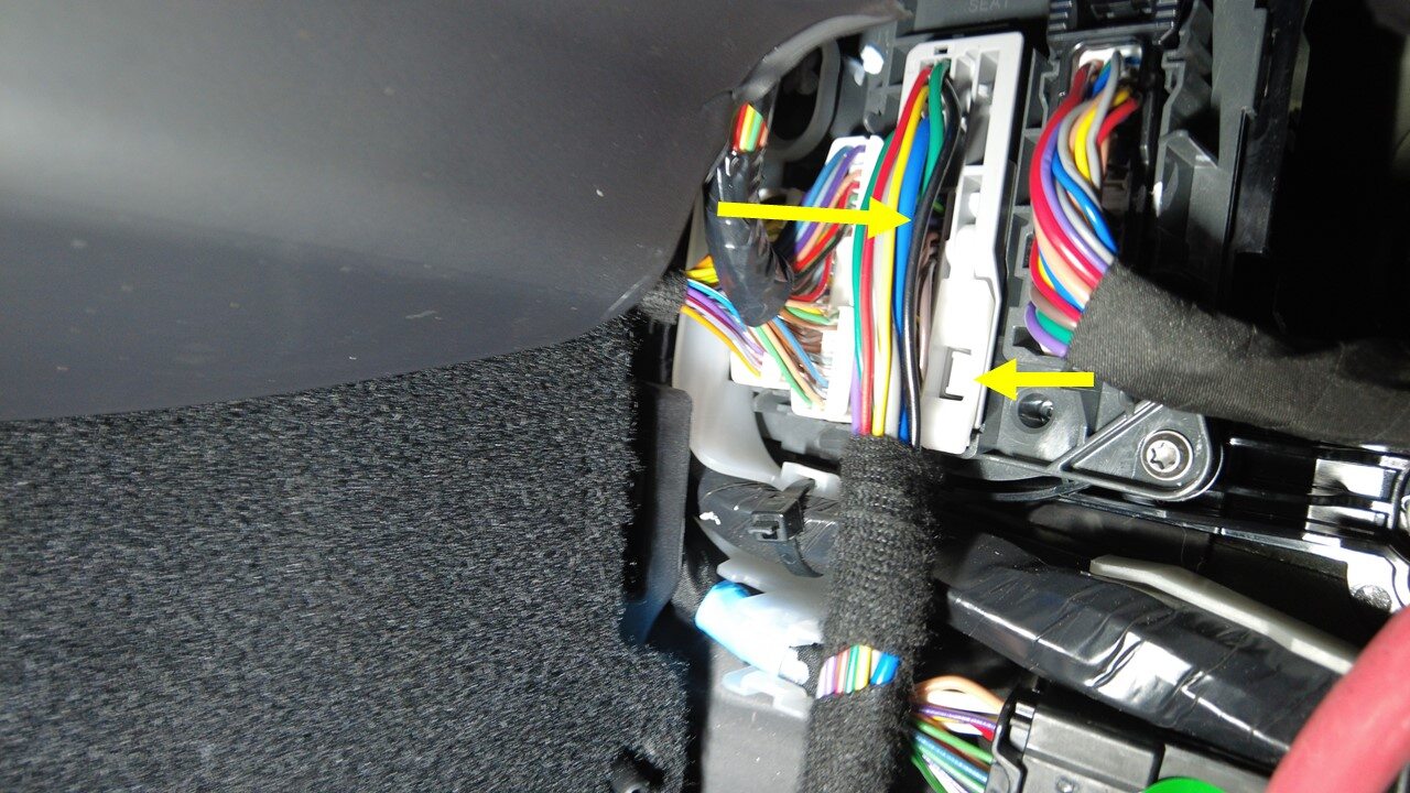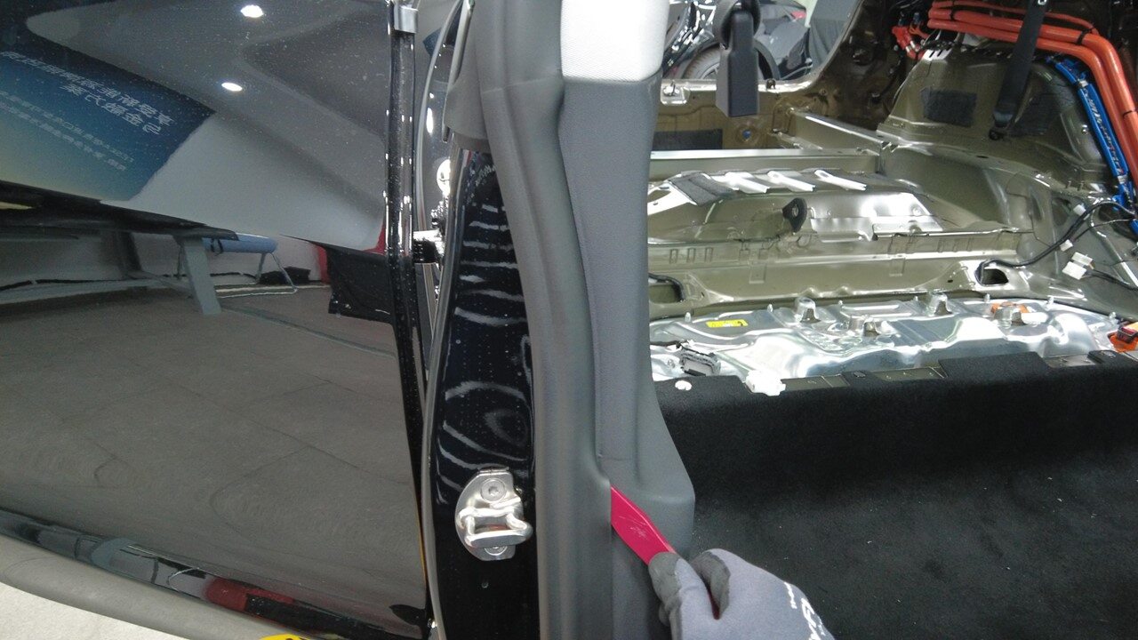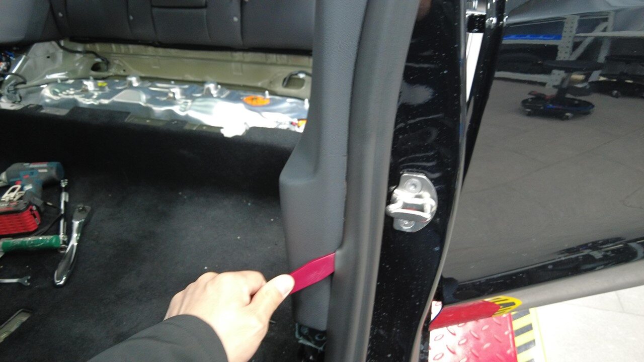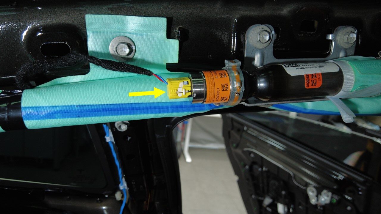 注Insert retractor into seat pre tensioner, Make sure it locks into position with push-pull-push test