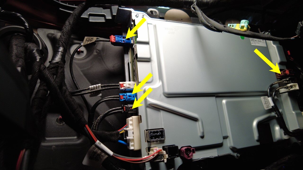 注1x connector, Remove retaining clip on the connector, Release connector, Then remove the remaining broken clip from connector, Discard retaining clip after removal, Originally installed clip is black, Replacement clip is orange