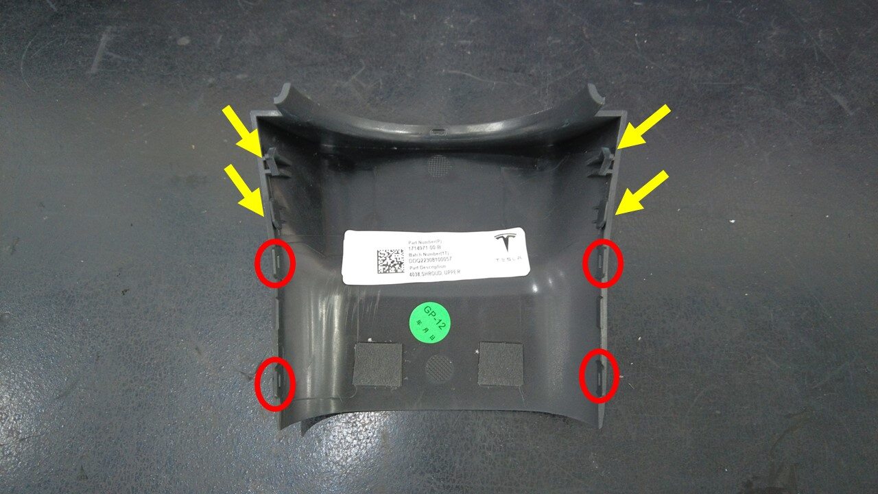 注11x clips, 2x positioning clips, 1x tab, Use trim tool starting at rear edge to release upper clips, If clips is too tight, Use prytool to remove clips, Then pull bottom to release remaining clips, Finally, release tab and pull out side panel backward, Replace clips if it is damaged