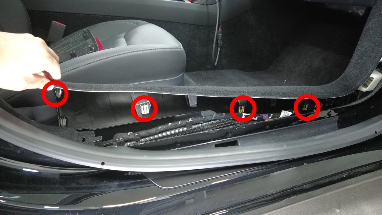 注4x clips, 2x guide tabs, Align the 2 front tabs then align the slot with harness bracket and then push rear clip to secure to lower B-pillar, Fully seat seal along trim