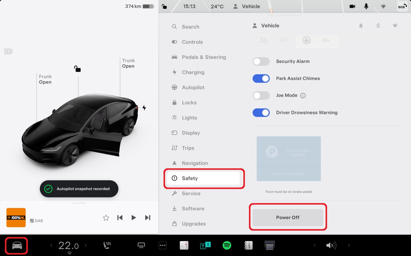 注Via Controls > Safety > Power Off, Select Power Off button at warning dialogue box