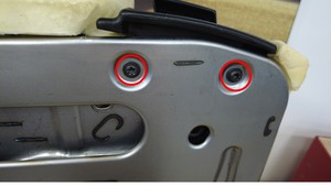 - 从座椅靠背框架上拆下第二排右侧座椅靠背饰板罩和泡沫。