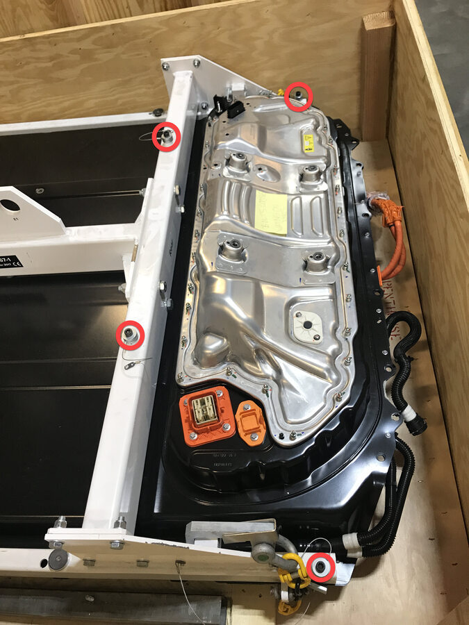 警告:放电后,等待 20 分钟,确认充电状态低于目标值。等待 20 分钟后,开路电压 (OCV) 会稳定下来,这对于确保测量准确至关重要。如果充电状态未达到规定水平,请继续放电。 请确保使用高压电池通信工具收集所有高压电池装运数据,且最好是在将高压电池从车辆上拆下之前收集。 警告:切勿运输或存放已失去高压绝缘的高压电池。请先验证高压电池绝缘状况,再打包运输或进行存放。请参阅 Toolbox 文章#41977或客户文档CD-21-16-003中所述的高压电池通信工具,以确定高压电池参数是否处于运输或存放的安全限值范围内。 |