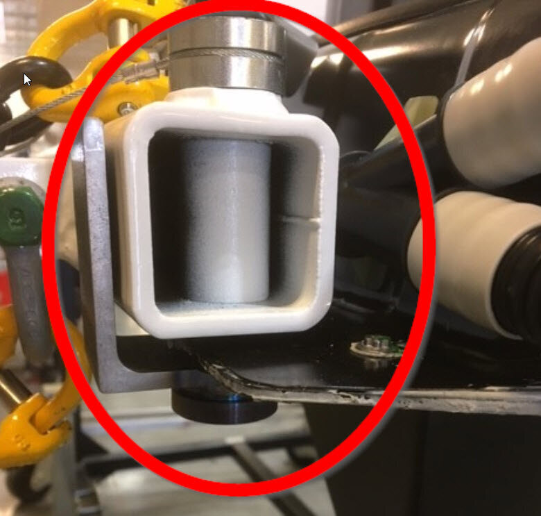注3 个卡子,1 个连接器,前备箱安全开关,3 个导片;对齐 3 个导片,然后向前推动以固定卡子。