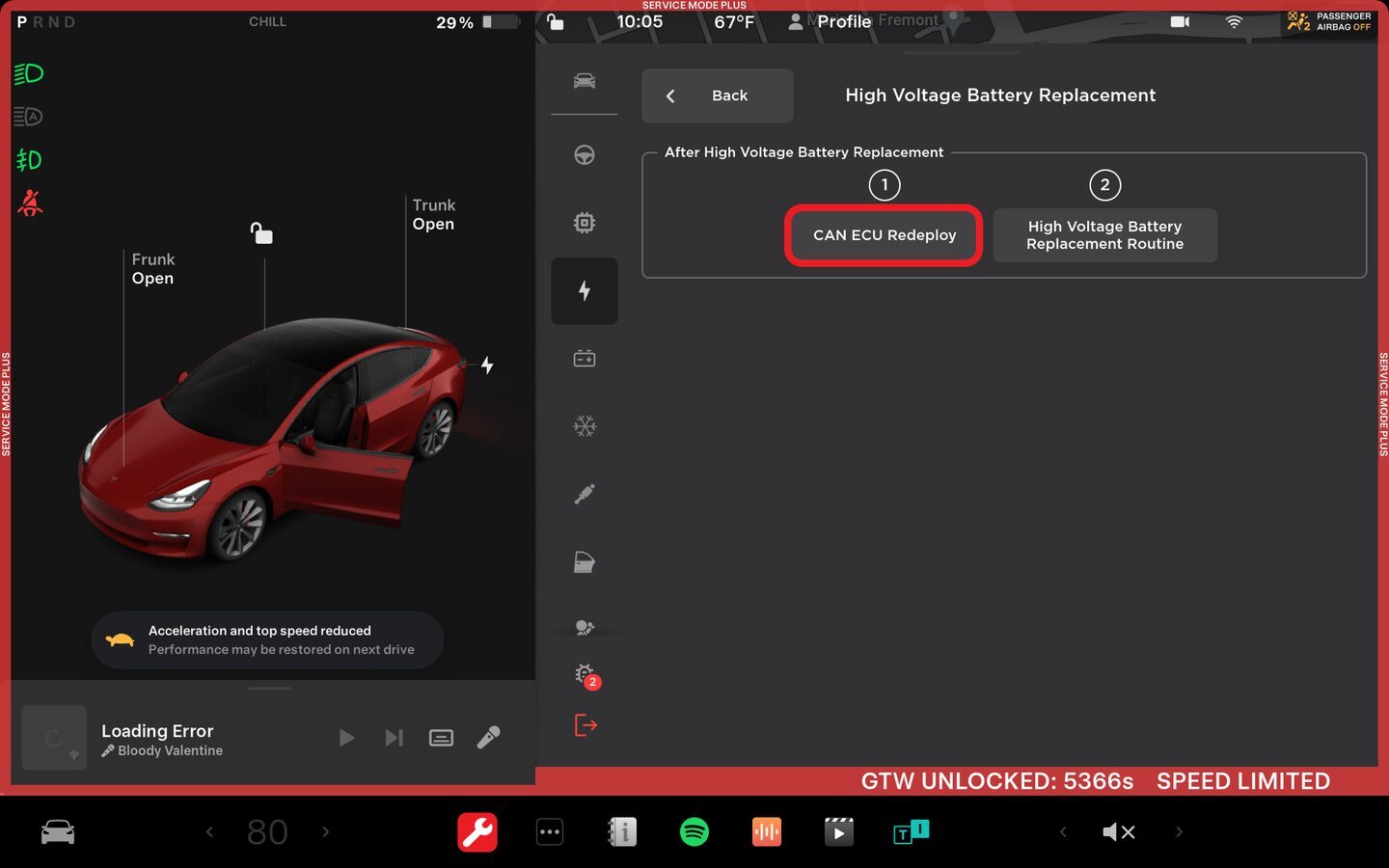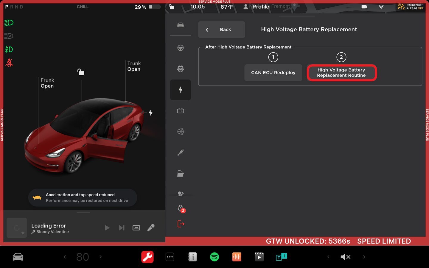 注操作如下:Service Mode Plus > High Voltage > HV Battery > Pack Replacement > CAN ECU Redeploy > Run;等待重新部署完成,然后选择 High Voltage Battery Replacement Routine > Run。