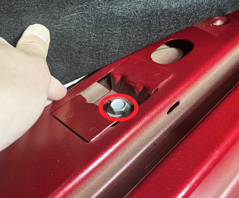 将后地毯向后拉动,以便接触电池内部后侧螺栓。