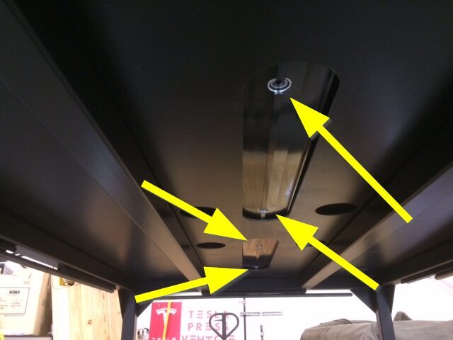 注4 个螺栓,10 毫米,5 Nm;松开 4 个盖子以便接触螺栓;新款车辆上的紧固件数量可能会有所不同。