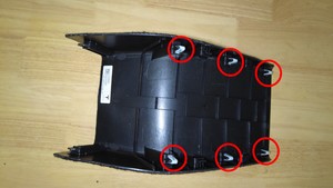 拆卸将中控台端板固定到中控台的卡子(6 个)和锁片(2 个),然后将端板从控制台上拆下。