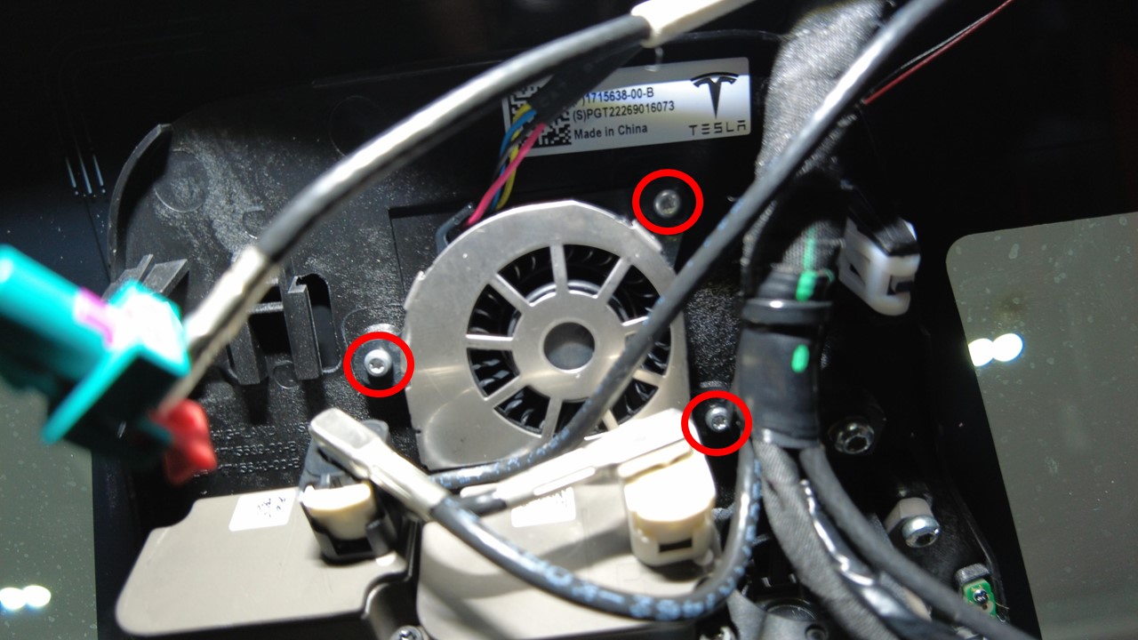 松开将三摄像头风扇固定到摄像头的螺钉(3 个),然后拆下三摄像头风扇。