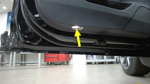 将电气线束从前车门地面照明灯连接器上断开,然后将照明灯从车辆上拆下。