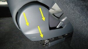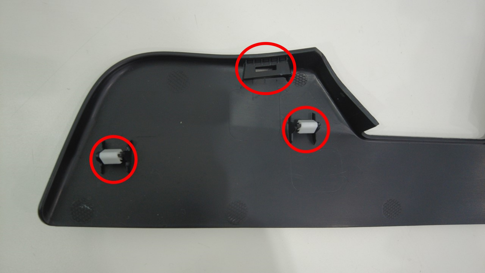 - 使用手电筒照明,移动内侧护板,确认后部卡子处于正确位置,然后轻轻按压后部,将其固定到内侧导轨。