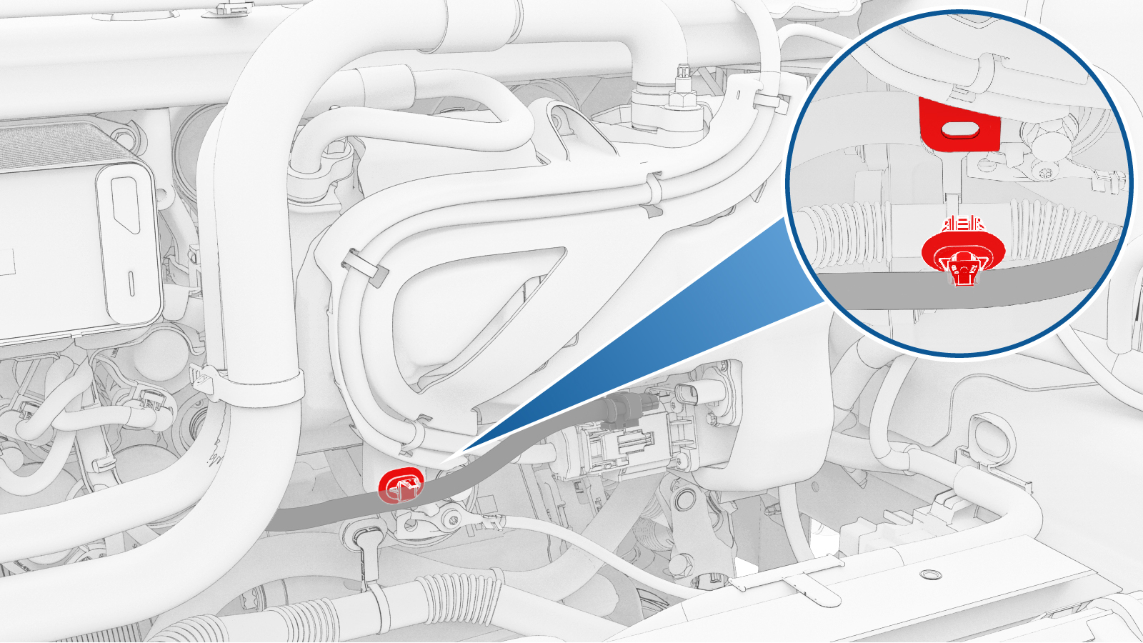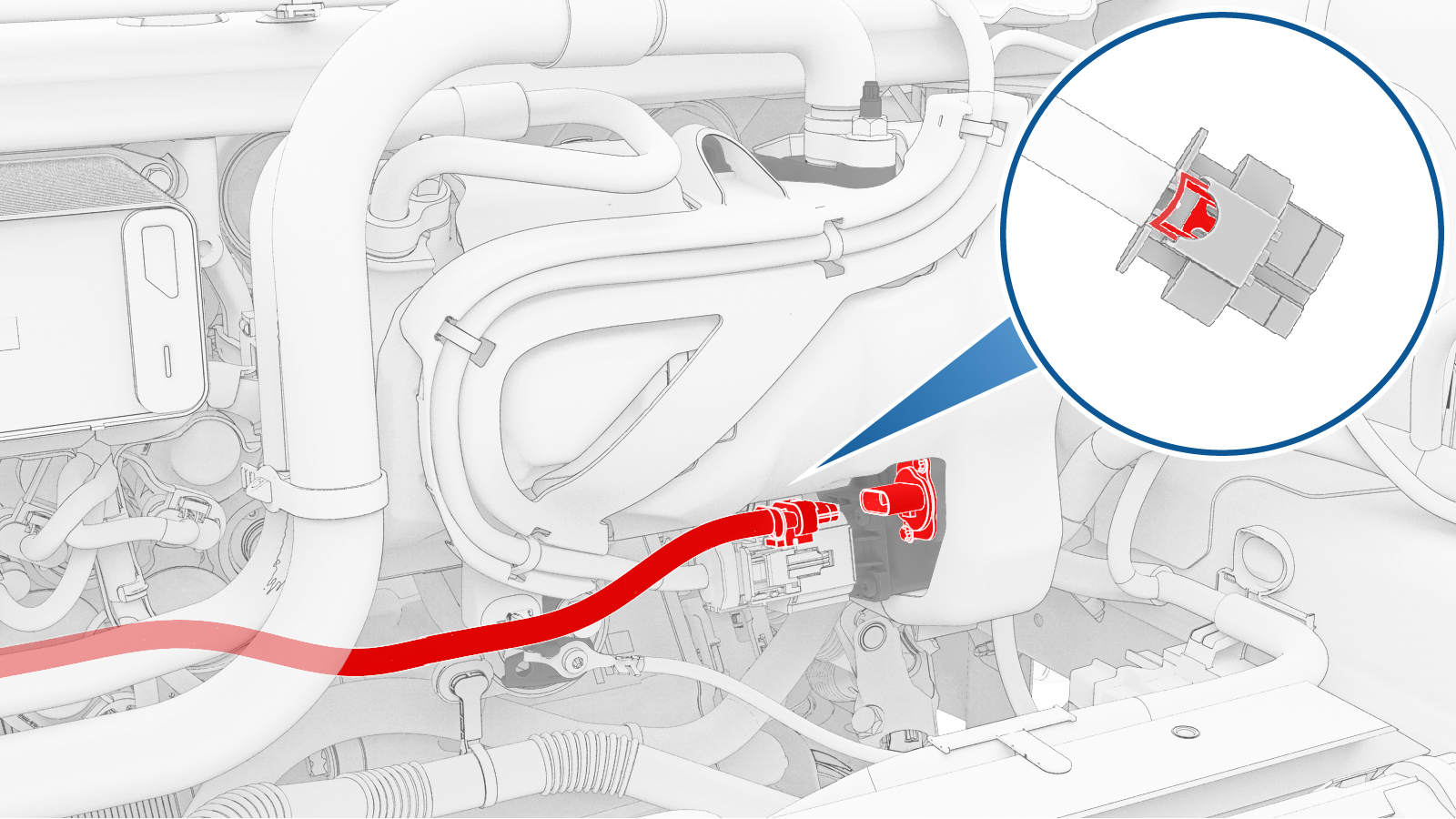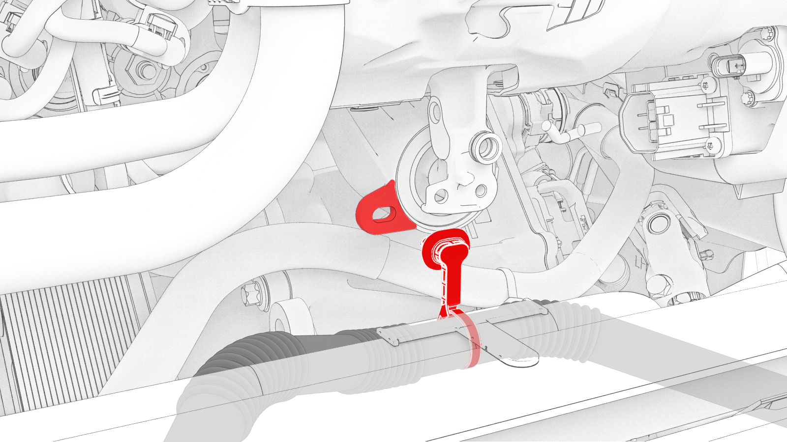 松开将高压电池回流软管固定到低压电池支架的卡子(2 个)。
