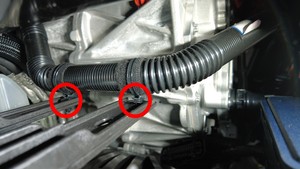 拆下将空调压缩机高压线束固定到减震塔支架的固定夹(5 个)。