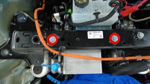 安装将低压电池和紧急响应回路固定到减震塔支架的固定夹。
