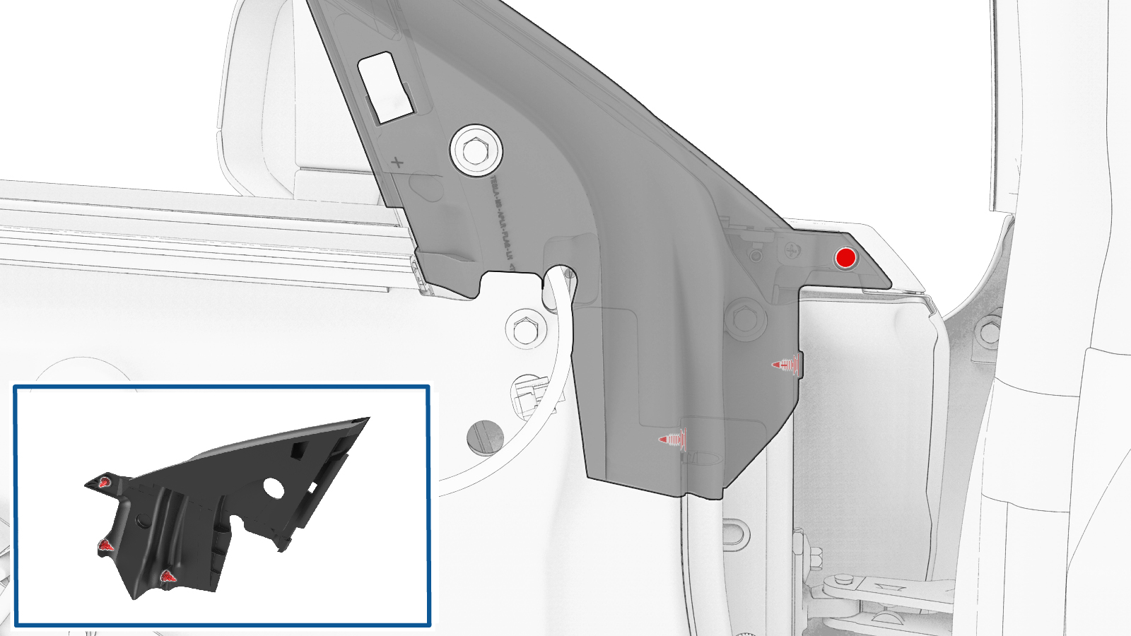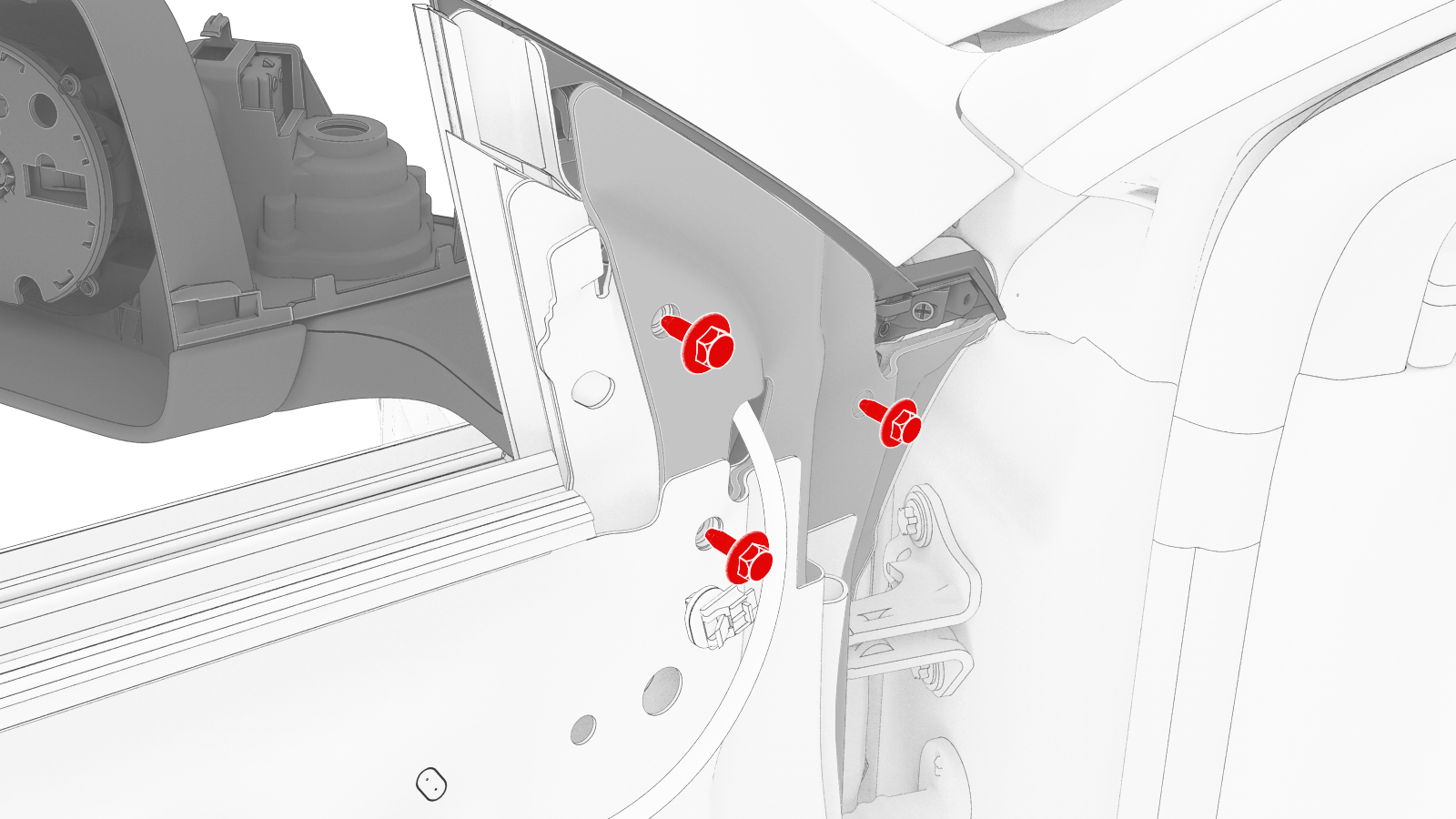 | 将左后视镜总成固定到左前车门的螺栓(3 个) |