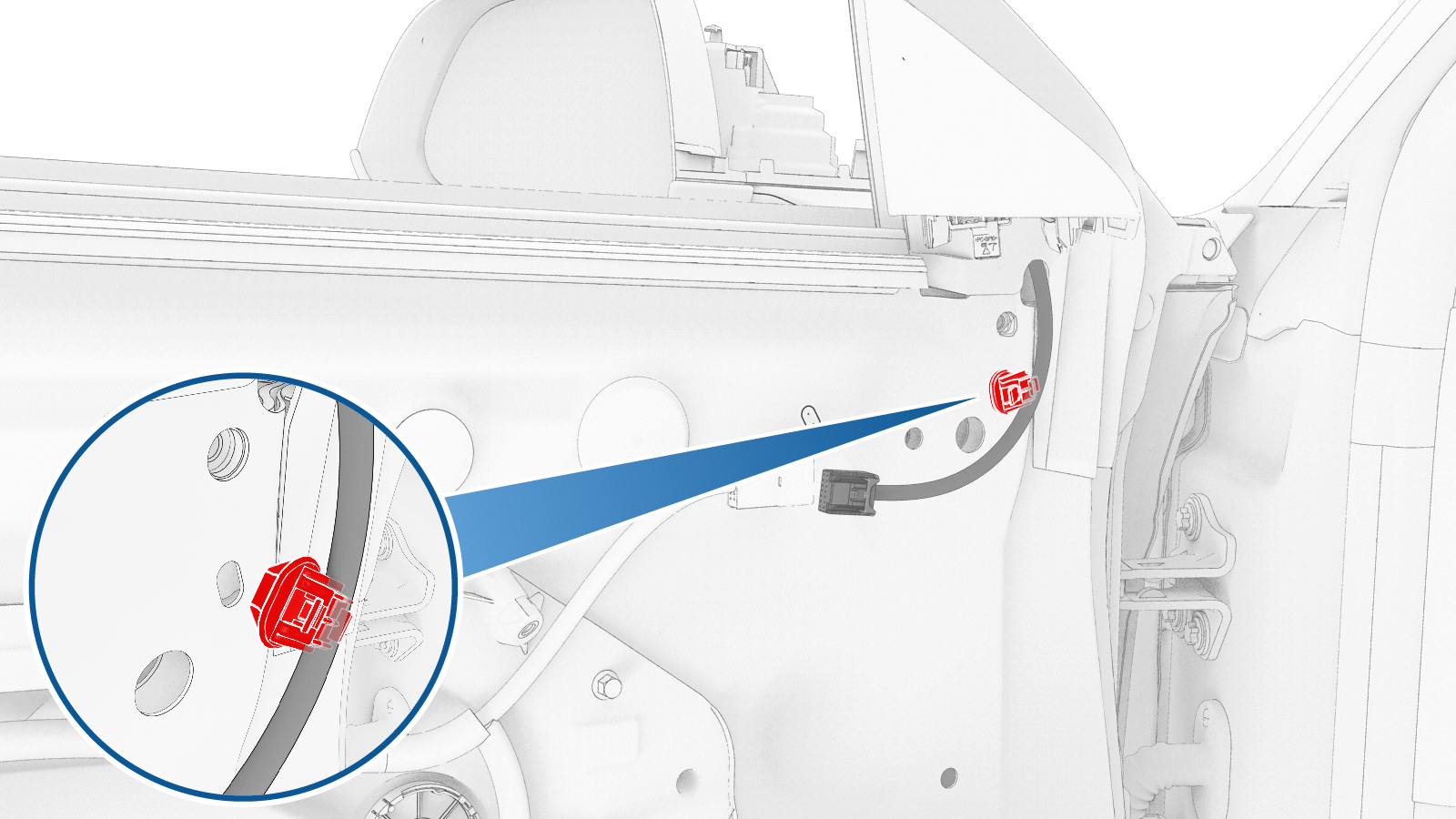 连接左侧外后视镜连接器。