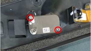 拆卸将左侧 B 柱摄像头固定到左侧 B 柱饰板的螺栓(2 个),然后将摄像头从 B 柱饰板上拆下。