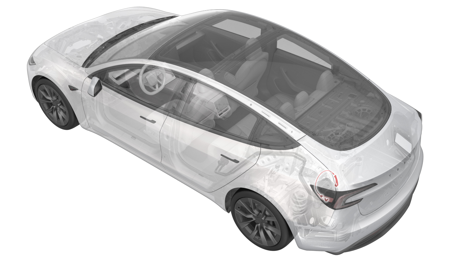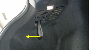 穿过后备箱左壁开口将吊耳向下拉,从充电接口上松开充电线缆。