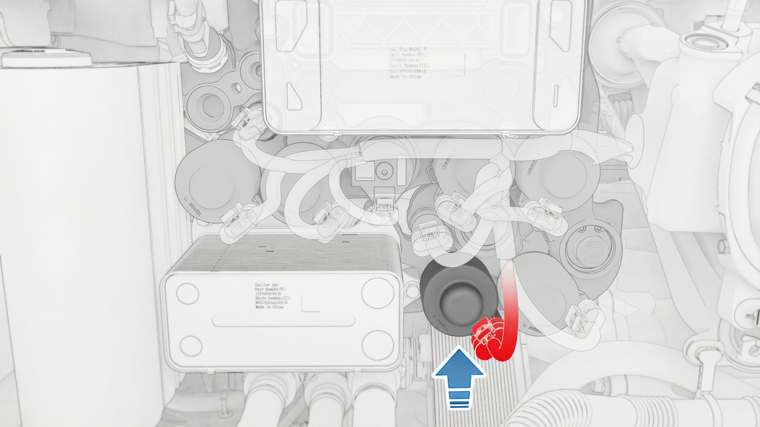 松开锁片,然后断开驾驶室左侧冷凝器膨胀阀上的电气连接器。