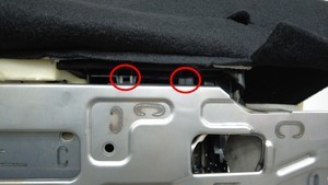 松开卡子,将第二排座椅靠背中央孔罩支架从座椅框架上拆下。
