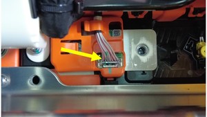 断开高压电池分流器线束连接器,然后从分流器绝缘体上松开线束。