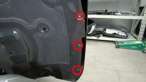 拆卸将右前轮拱内衬固定到前饰板的卡子(3 个),然后将内衬移开,留出操作空间。