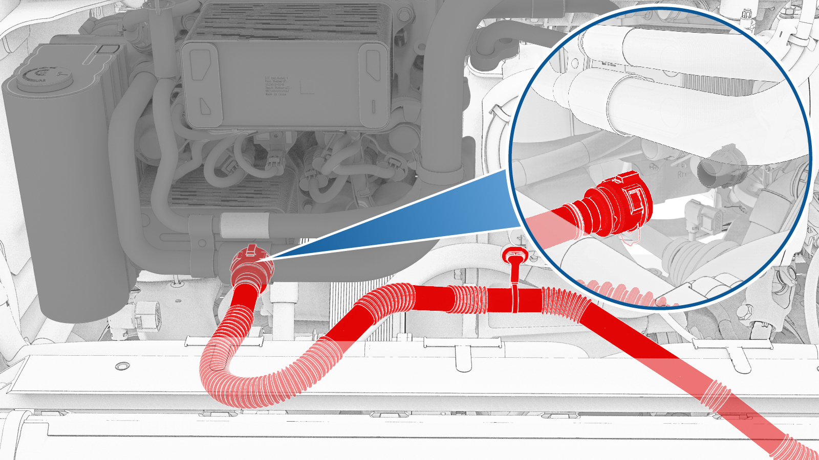 取下超级歧管和散热器入口软管上的塞子,立即将散热器入口软管与超级歧管相连,然后紧固卡子。