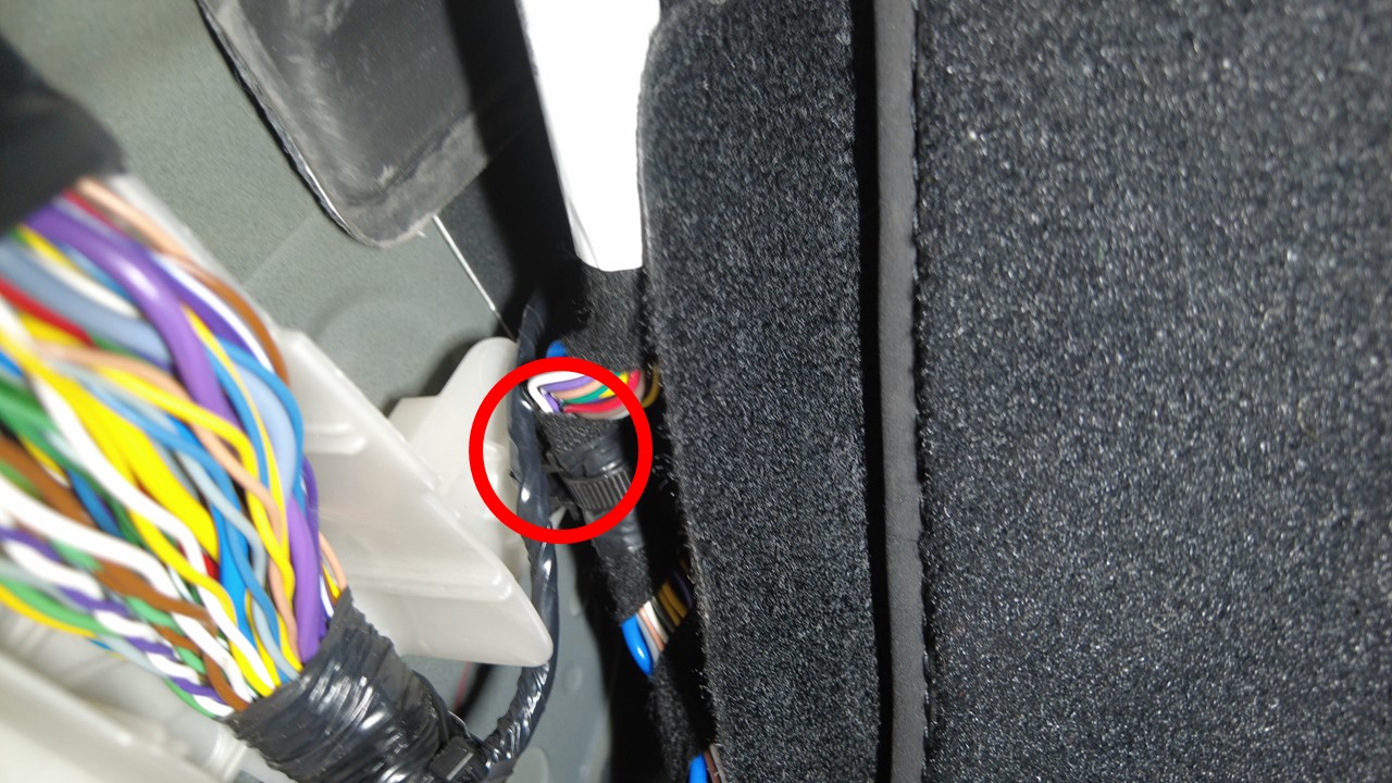 - 将 LH 前座椅线束从 LH 前毡毯下部拉出。