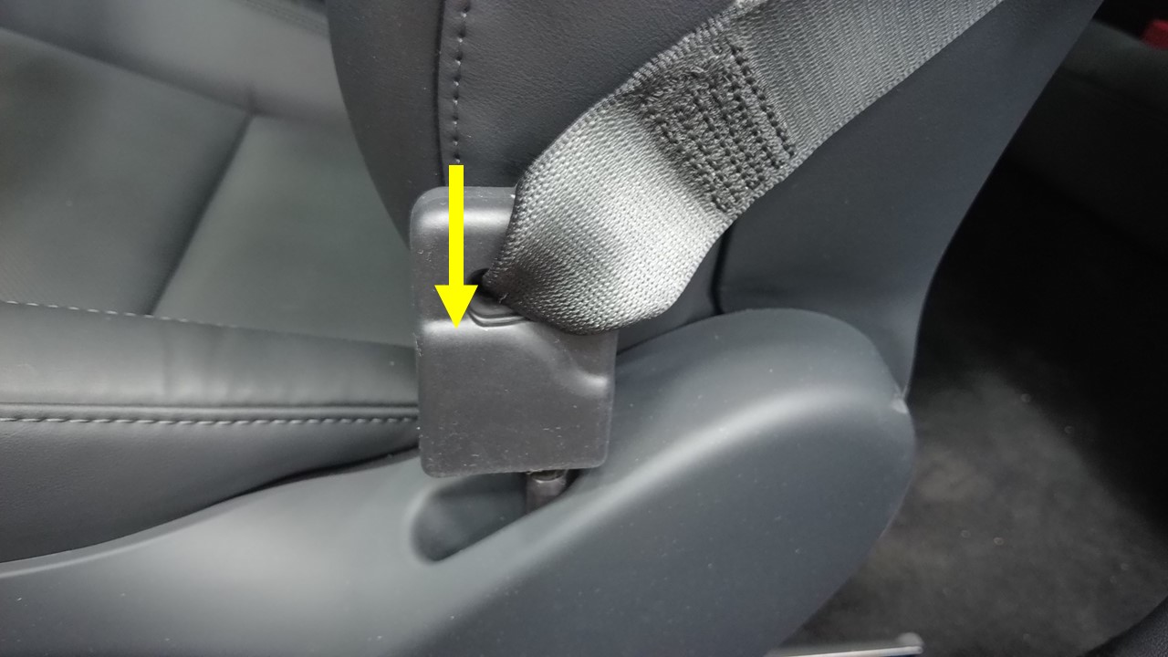 - 将座椅安全带释放钥匙 (1133787-00-A) 插入安全带预紧器连接件底部,将安全带从预紧器上松开。