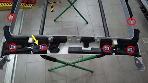 安装将顶篷后端固定到车身的卡子(6 个)和定位销(2 个)。
