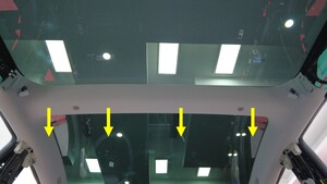 警告请留意顶篷、遮阳板和玻璃。切勿损坏这些部件。